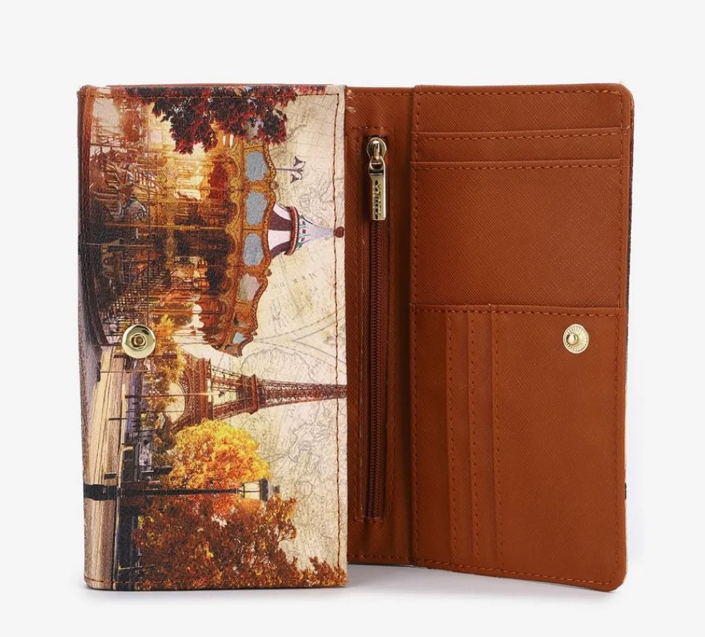 Portafoglio donna Ynot? 364. Realizzato in robusto PVC, patta chiusa da bottone, soffietti per banconote con tasca chiusa da zip per monete.