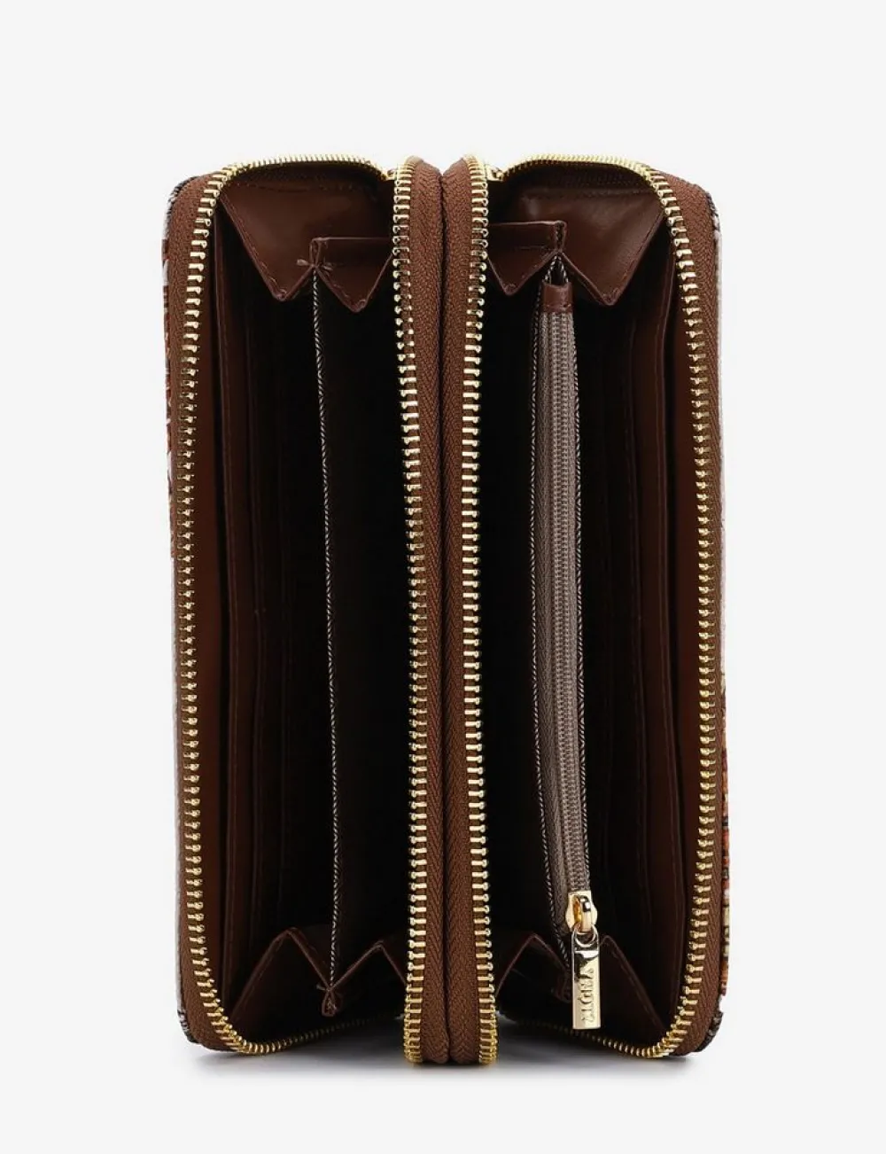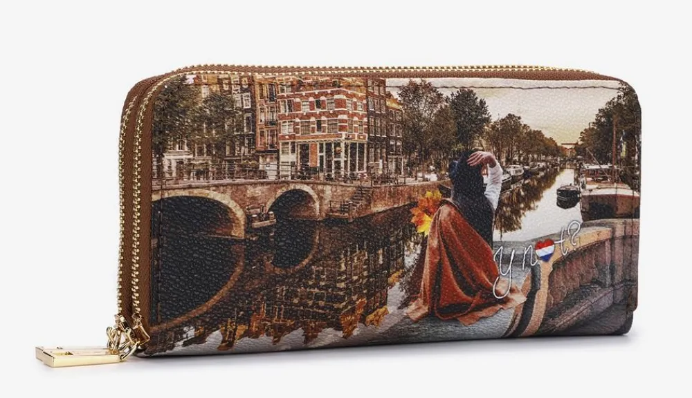 Portafoglio donna Ynot? 568. Realizzato in robusto PVC, due ampie tasche principali chiuse da zip con soffietti per banconote e tasca chiusa da zip per monete.