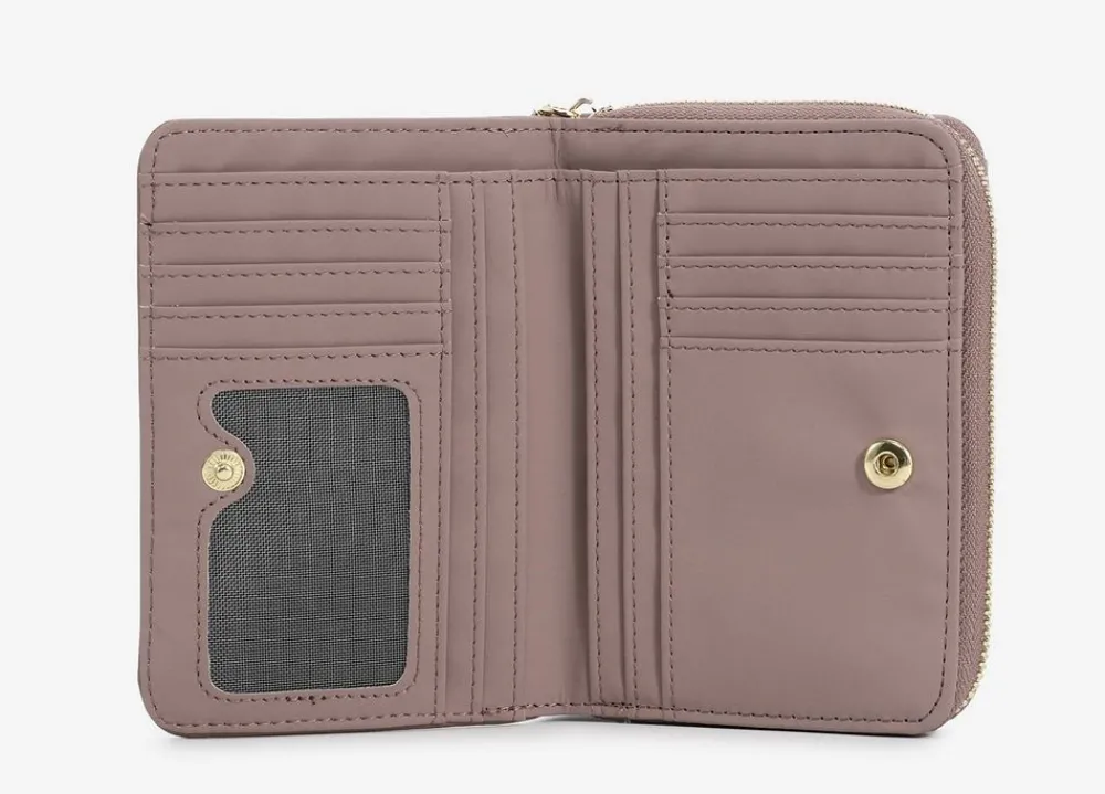 Portafoglio donna Ynot? Lovers 362. Realizzato in morbido materiale sintetico, tasca principale chiusa da bottone con vano banconote e documenti. Tasca posteriore portamonete, chiusa da zip.