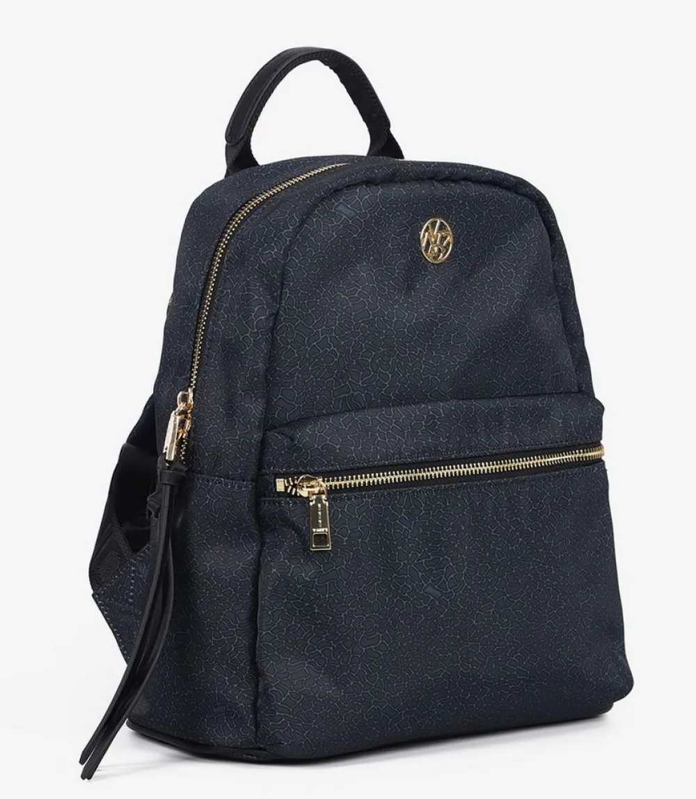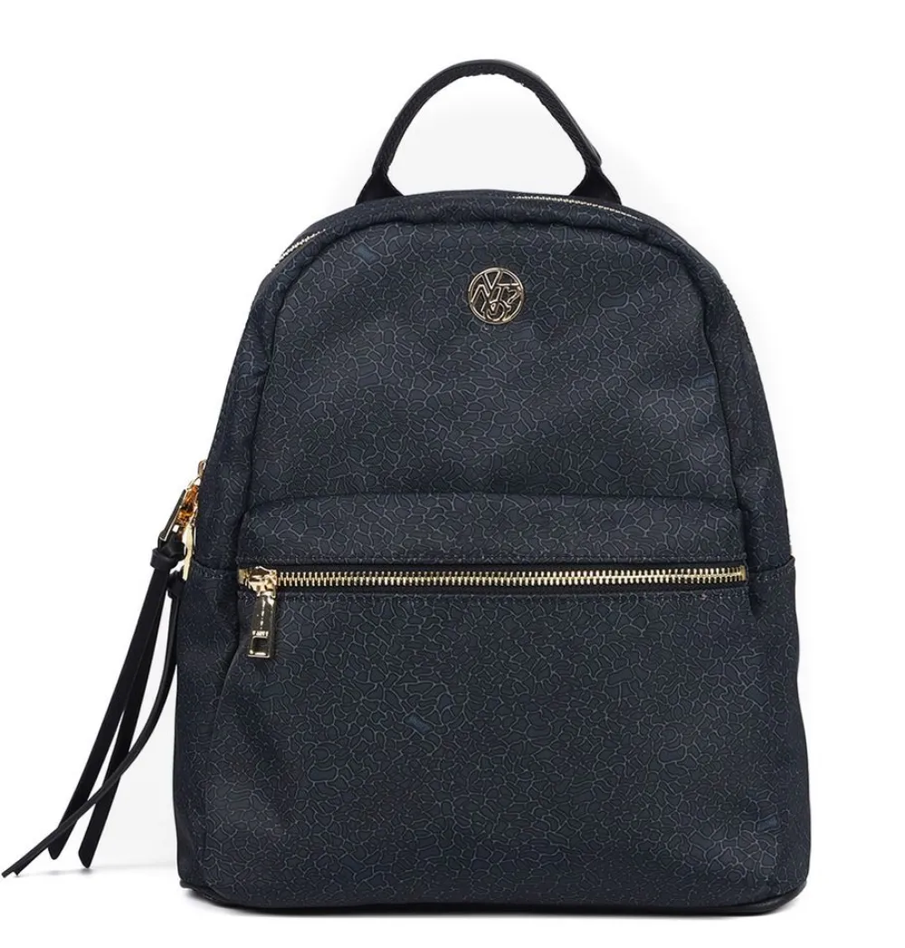 Zaino donna Maria Celine Myla 03. Zaino realizzato in robusto materiale sintetico. Ampia tasca principale chiusa da zip, tasca interna chiusa da zip e tasche per piccoli oggetti. Tasca frontale. Spallacci regolabili in lunghezza.