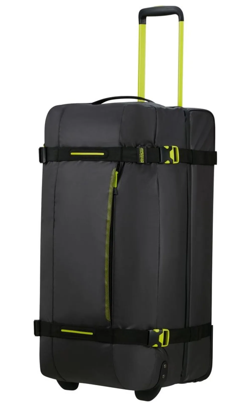 Trolley grande American Tourister Urban Track. Realizzato in robusto poliestere riciclato, con asta di traino telescopica con push button, ampia tasca principale chiusa da zip con due comparti principali interni completamente divisi. Doppia maniglia anteriore e maniglia di servizio superiore. Sistema di chiusura a tripla combinazione TSA integrato. Slitte di rinforzo posteriori. Nastri di compressione laterali. Garanzia 3 anni.