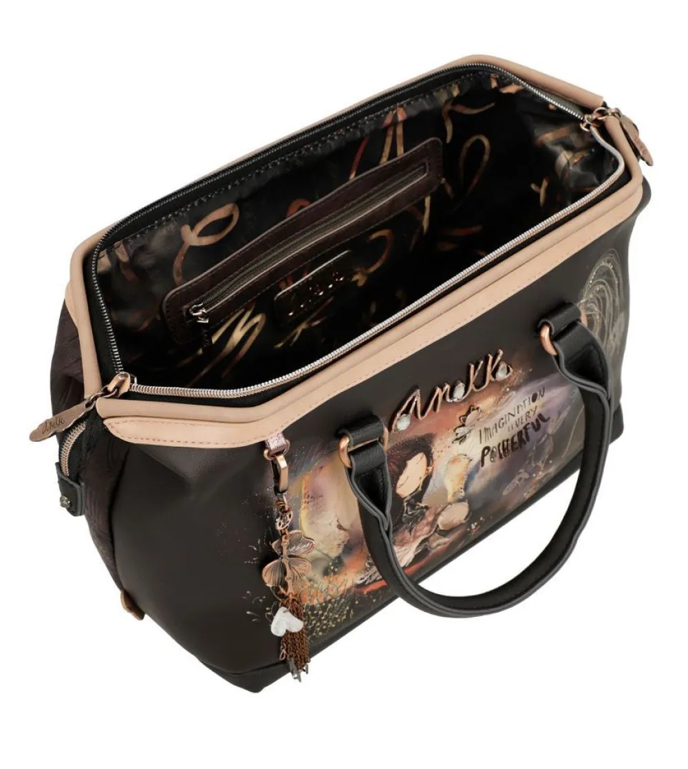 Borsa due manici Anekke Core 39801-151. Borsa con doppia maniglia superiore, ampia tasca principale con chiusura a zip, tasche interne per piccoli oggetti. Tasca posteriore chiusa da zip. Tracolla amovibile e regolabile in lunghezza. Tutti gli accessori, come tiralampo e borchie, sono personalizzate Anekke.