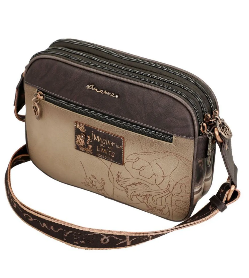 Borsa due manici Anekke Land 39712-188. Borsa con doppia maniglia superiore, ampia tasca principale chiusa da zip, con tasche interne per piccoli oggetti. Tasca anteriore e posteriore, chiuse da zip. Tutti gli accessori, come tiralampo e borchie, sono personalizzate Anekke.