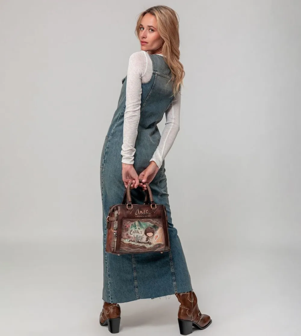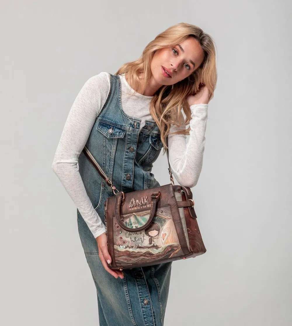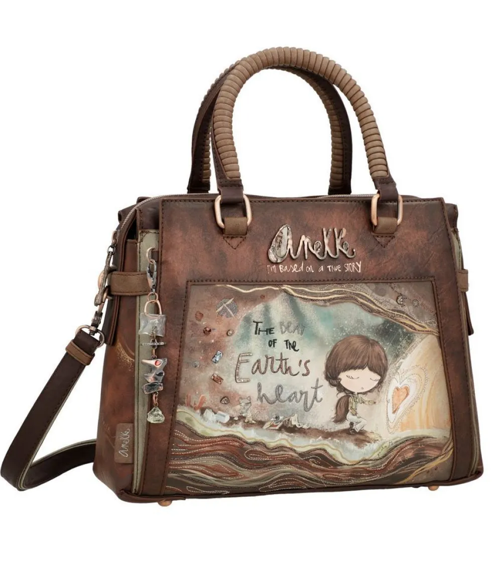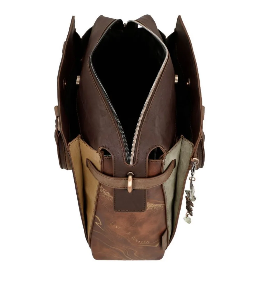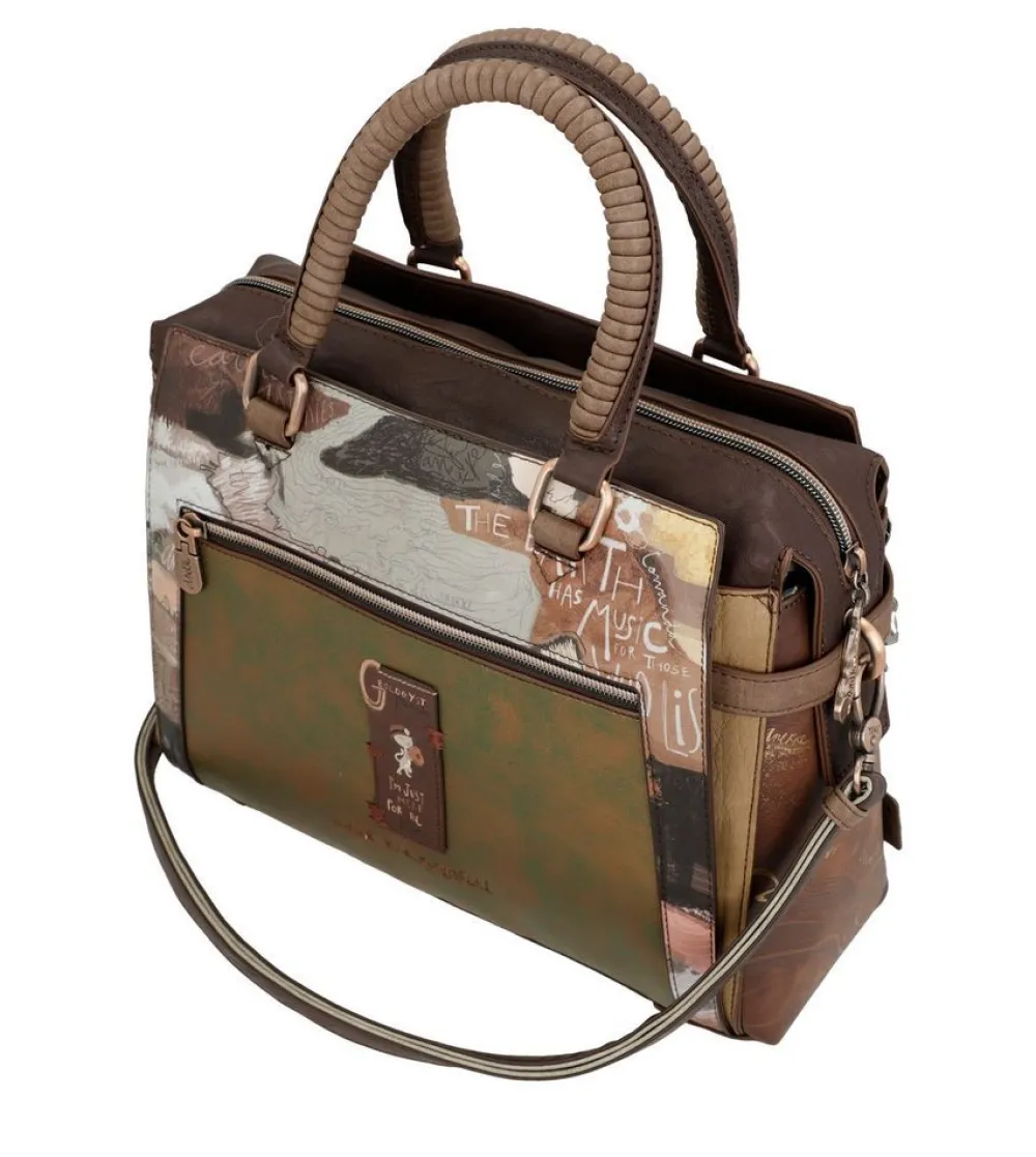 Borsa due manici Anekke Outer 39811-189. Borsa con doppia maniglia superiore, ampia tasca principale con chiusura a zip, tasche interne per piccoli oggetti. Tasca posteriore chiusa da zip. Tracolla amovibile e regolabile in lunghezza. Tutti gli accessori, come tiralampo e borchie, sono personalizzate Anekke.