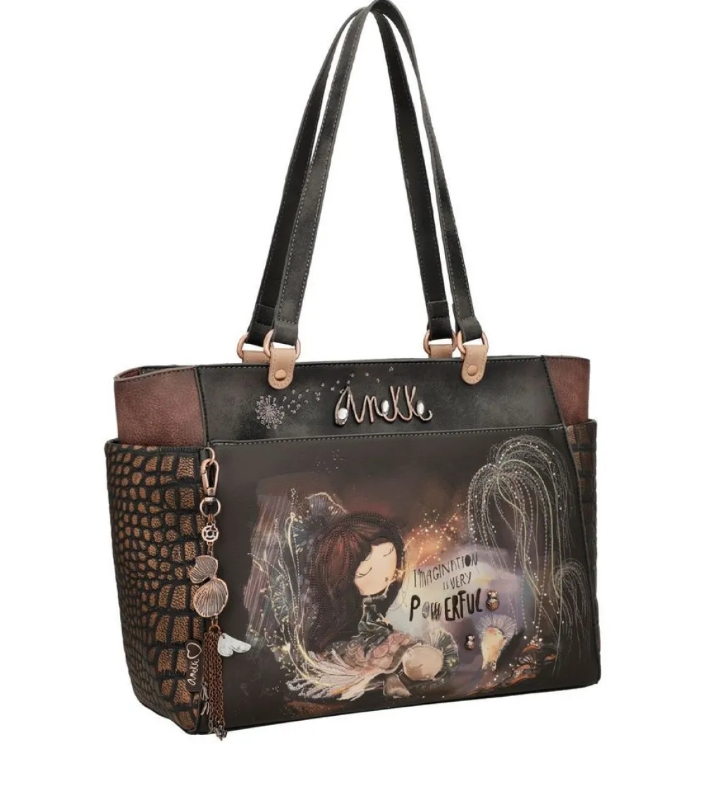 Borsa a tracolla Anekke Dreamverse 39703-002. Borsa a tracolla, ampia tasca principale chiusa da zip, con tasche interne per piccoli oggetti. Tasca posteriore chiusa da zip. Tracolla regolabile in lunghezza. Tutti gli accessori, come tiralampo e borchie, sono personalizzate Anekke.