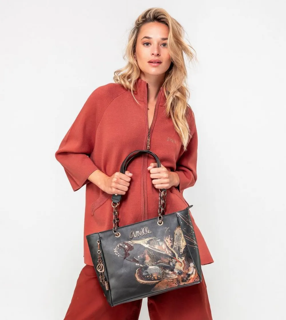 Borsa due manici Anekke Crust 39891-268. Borsa con doppia maniglia superiore, ampia tasca principale chiusa da zip. Tasca posteriore chiusa da zip. Tutti gli accessori, come tiralampo e borchie, sono personalizzate Anekke.