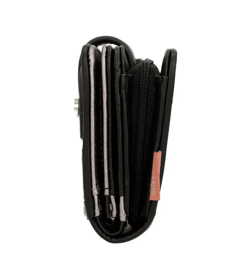Portafoglio donna Anekke Sixties 38869-902 Black & White. Realizzato in robusto PVC, tasca principale chiusa da bottone, con soffietti per banconote e vano portadocumenti. Tasca portamonete posteriore chiusa da zip.