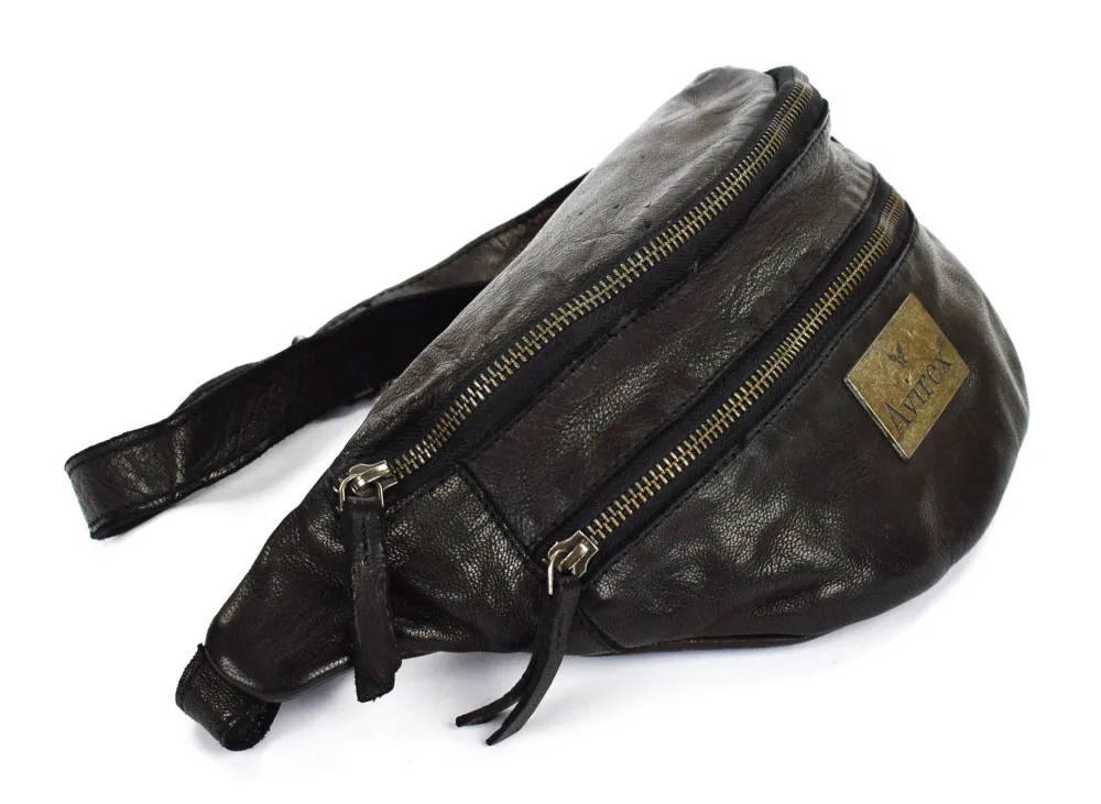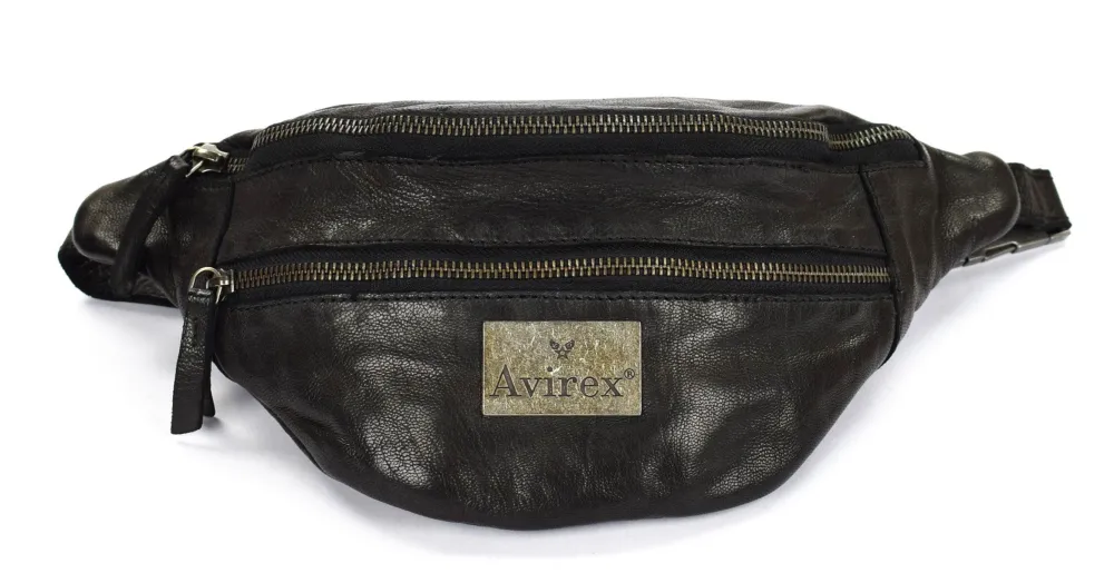 Marsupio in pelle Avirex Mayday MDY07. Marsupio realizzato in robusta pelle invecchiata. Ampia tasca principale chiusa da zip, comodamente accessibile dalla parte superiore. Tasca frontale e tasca posteriore chiusa da zip. Cintura regolabile in lunghezza, gancio di chiusura metallico brunito.
