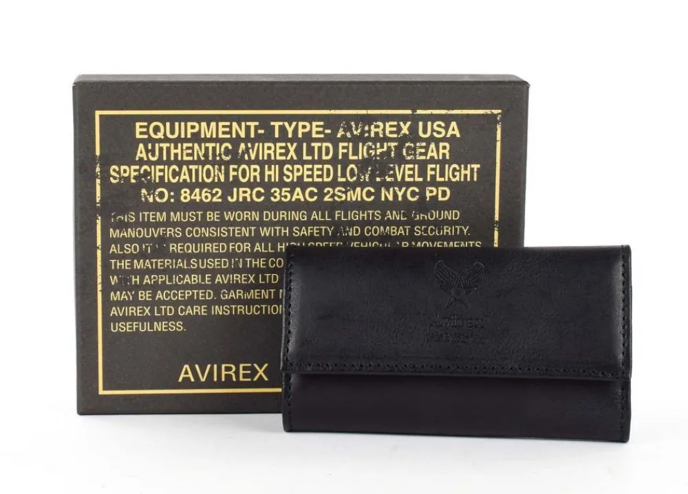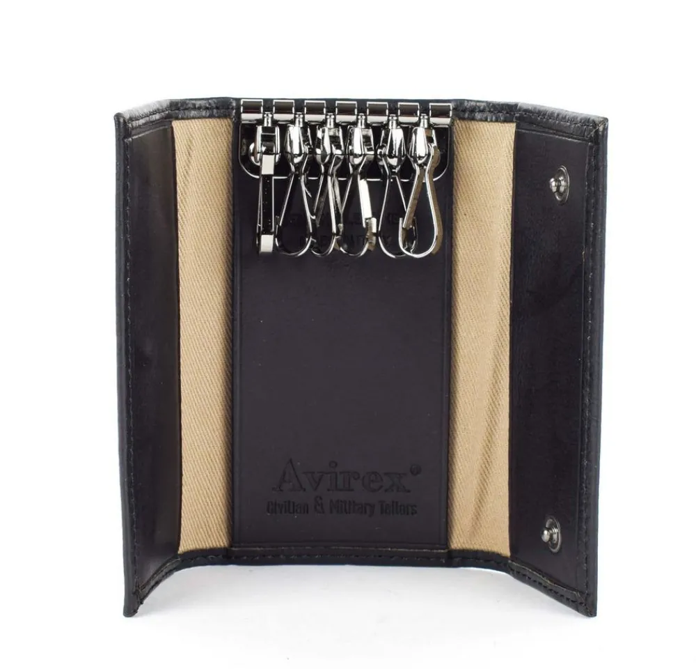 Portachiavi in pelle Avirex Arizona 356. Realizzato in vera pelle invecchiata , tasca principale chiusa da bottone, sei ampi ganci metallici. Logo frontale.