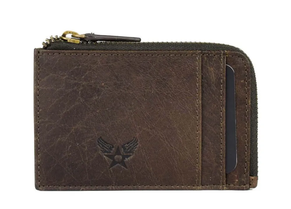 Portadocumenti piatto con zip Avirex Durango DRN08. Portafoglio realizzato in vera pelle invecchiata di alta qualità , ampio comparto principale chiuso da zip, due frontali organizzati per bancomat e carte di credito.