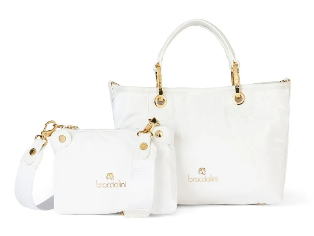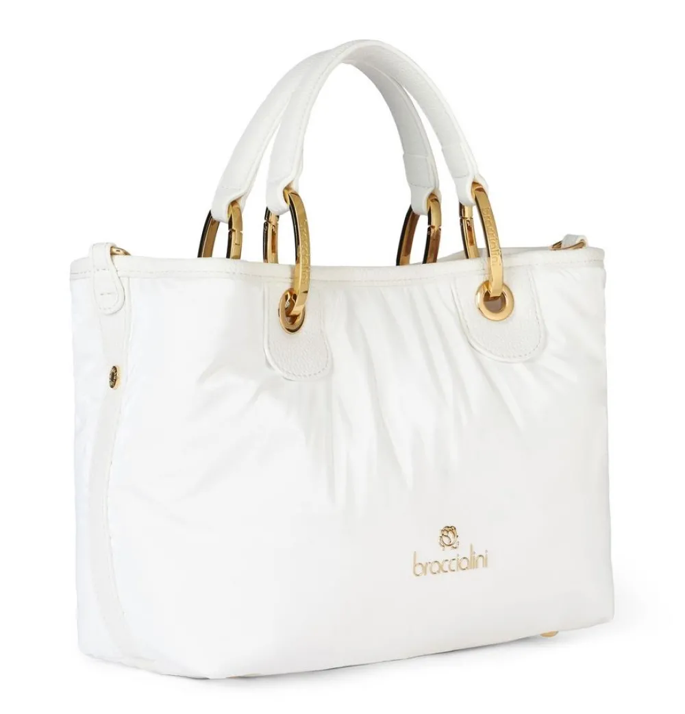 Borsa a mano piccola Braccialini Beth Puffy. Borsa realizzata in materiale sintetico di alta qualità . Ampia tasca principale chiusa da bottone, tasca interna chiusa da zip e tasche per piccoli oggetti. Busta interna che diventa una pratica borsa. Tracolla amovibile.