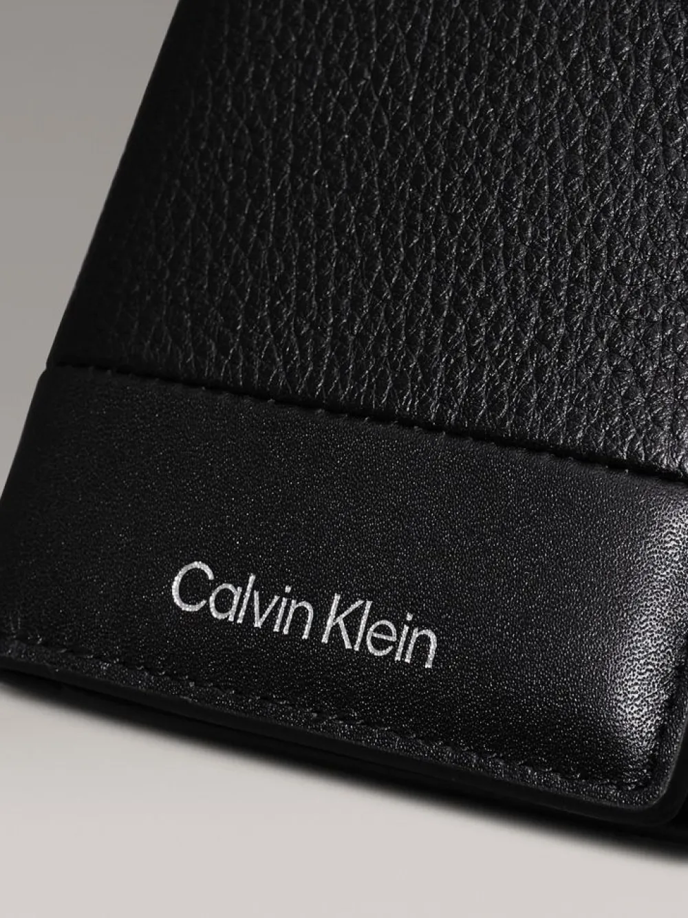 Portafoglio uomo piccolo in pelle Calvin Klein. Realizzato in pelle di alta qualità , con vano portadocumenti, tasca portamonete chiusa da bottone e vano portabanconote. Schermatura RFID.