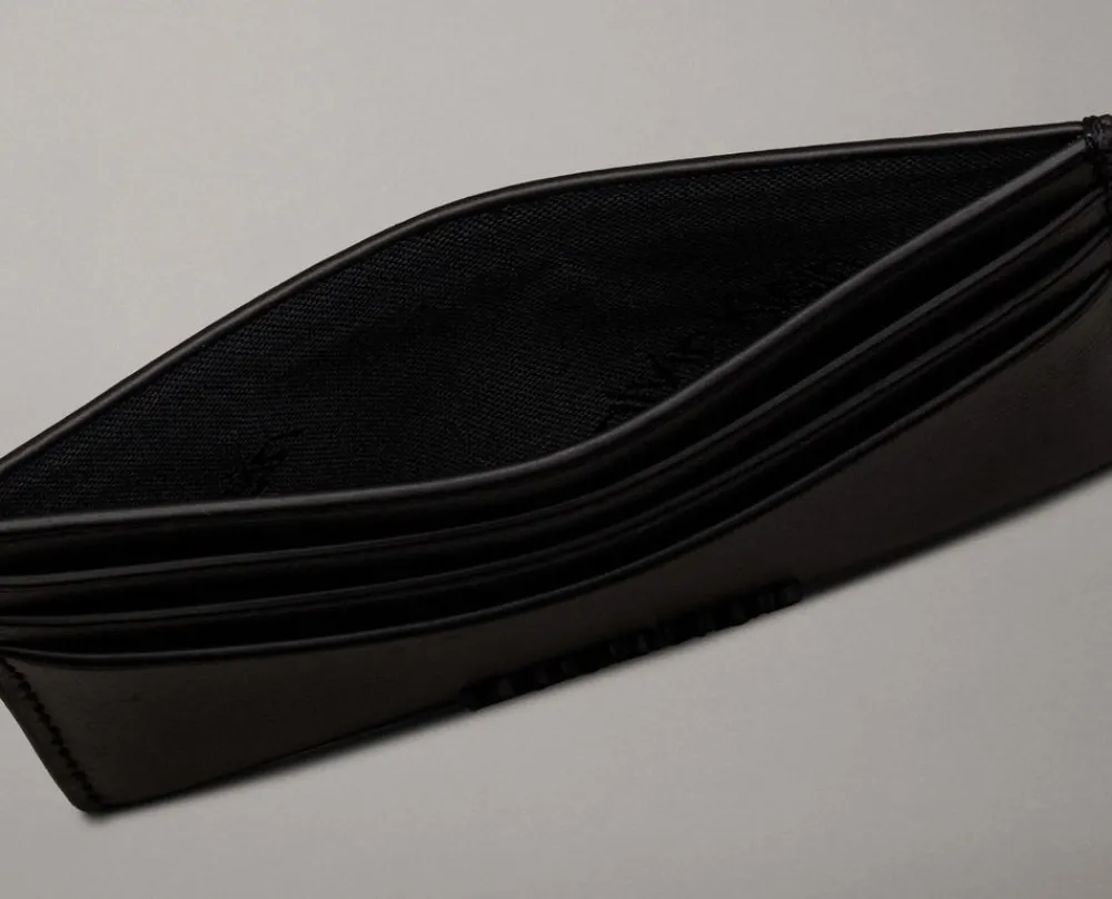 Portadocumenti sottile realizzato in vera pelle. Doppio frontale organizzato con porta carte di credito. Tasca superiore. Logo frontale.