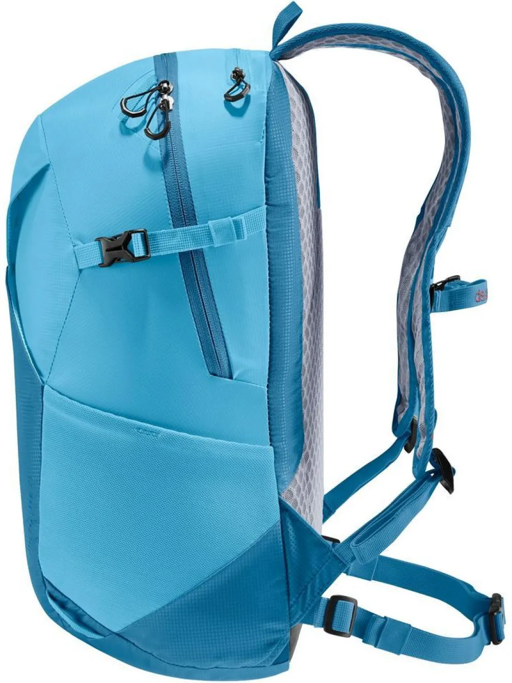 Zaino Bici Deuter Bike 1 20. Zaino ultra-leggero e compatto, realizzato in robusto 210/420 D PA. Tasca principale chiusa da zip. Schienale super confortevole e traspirante Airstripes. Spallacci ergonomici. Copertura antipioggia. Compatibile con sistema di idratazione 3L (non incluso). Cintura sternale regolabile. Tasca frontale con organizzazione per penne e documenti. Tasca laterale porta smartphone. Inserti rifelttento per maggiore visibilità . Garanzia 2 anni.