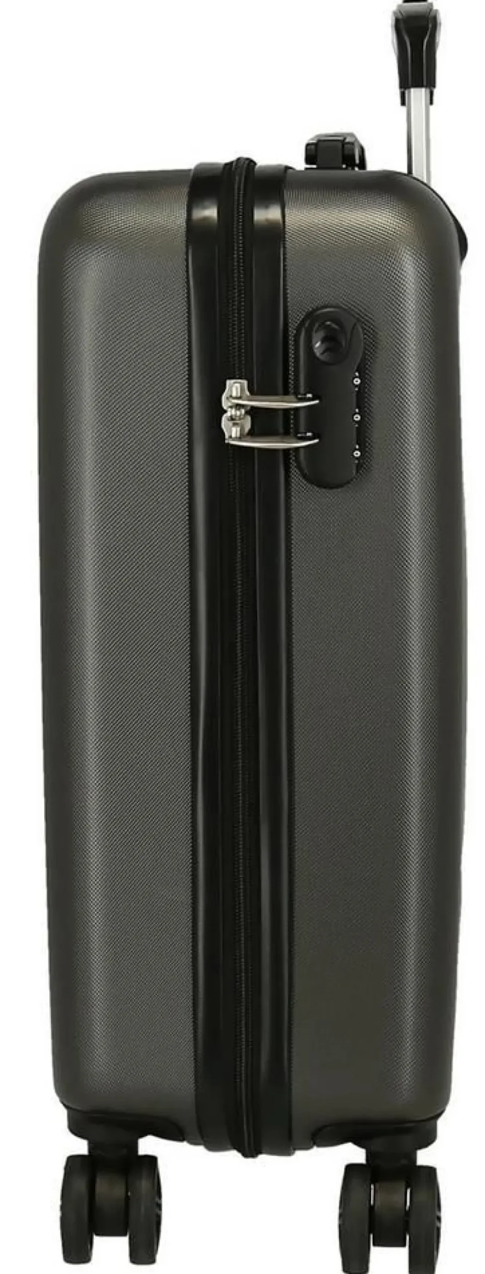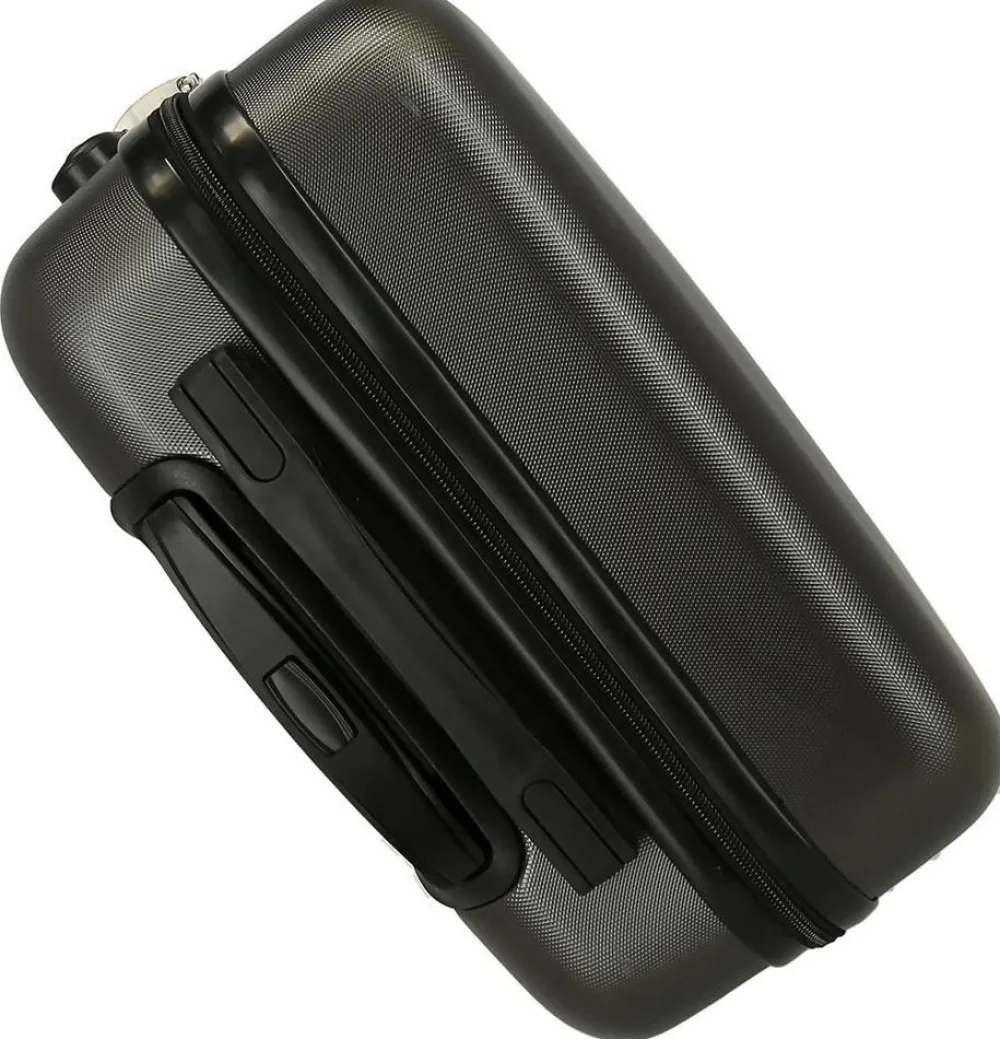 Trolley cabina Disney Mickey Outline. Trolley cabina realizzato in robusto ABS, quattro grandi e silenziose ruote piroettanti, zip di chiusura con sistema di sicurezza a tripla combinazione. Carrello di traino regolabile in altezza con push botton. Interno completamente foderato, con nastri per bloccare l’abbigliamento e divisorio. Garanzia 2 anni.