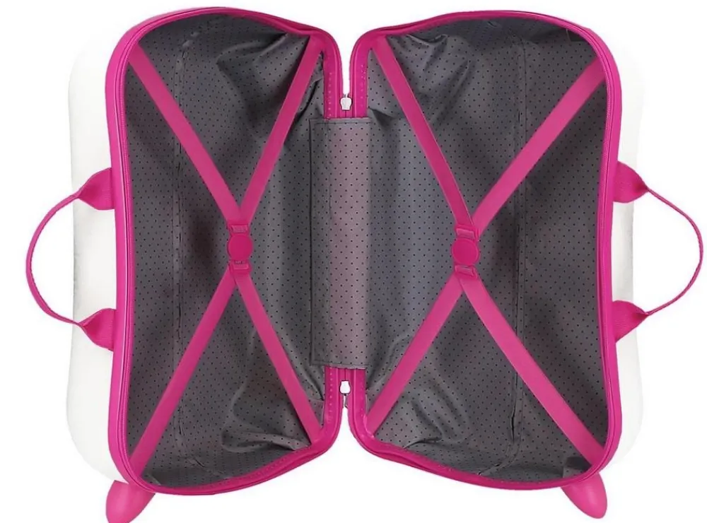 Valigia per bambini cavalcabile Disney Minnie Super Helpers. Valigia 4 ruote realizzata in robusto ABS ultraleggero, maniglie superiori, tracolla amovibile regolabile in lunghezza. Interno foderato, con nastri per bloccare l’abbigliamento. Misura consentita come bagaglio a mano. Garanzia 2 anni.