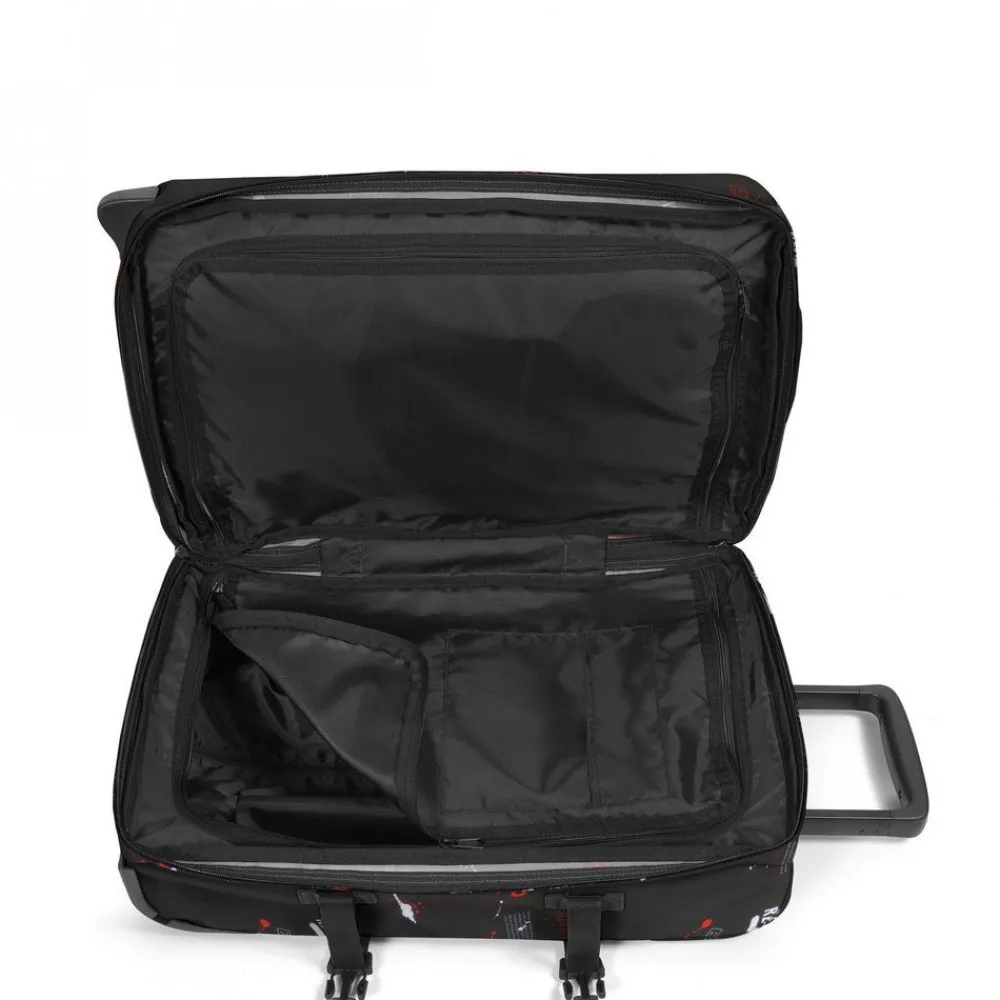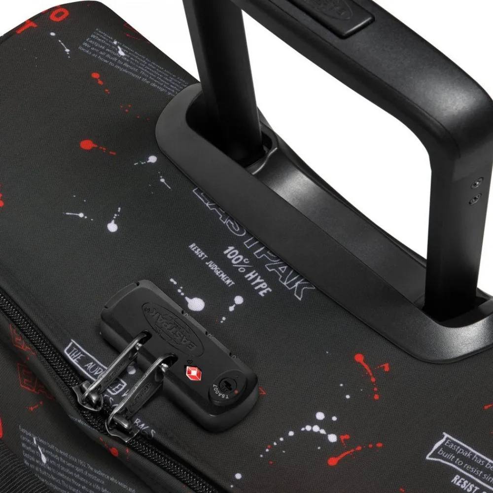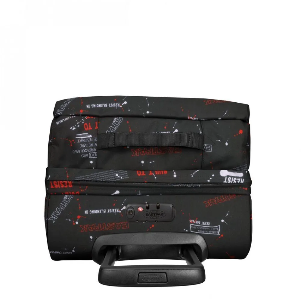 Trolley Eastpak Tranverz S Authentic Collection, bagaglio a mano aereo. Realizzato in robusto Poliestere con asta di traino telescopica a scomparsa con push botton, doppio comparto separato, tasca frontale con zip, ruote integrate e piedi inferiori rigidi, chiusura a tripla combinazione con TSA per gli Stati Uniti. Le cinghie di compressione laterali regolabili consentono di bloccare il contenuto anche a mezzo carico. Garanzia 30 anni.