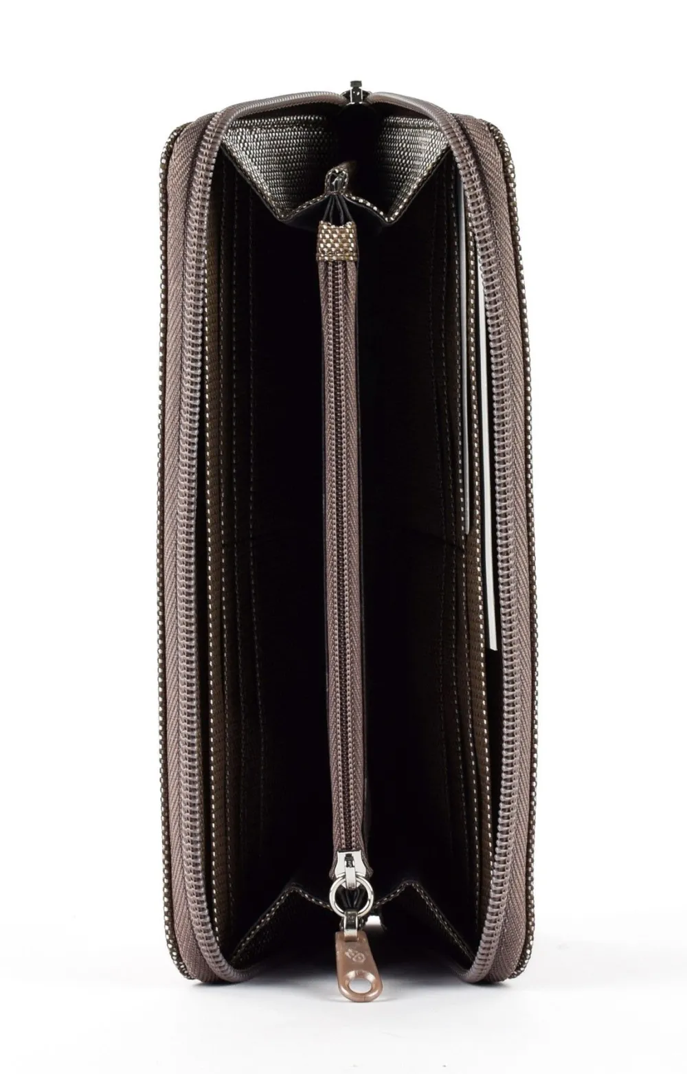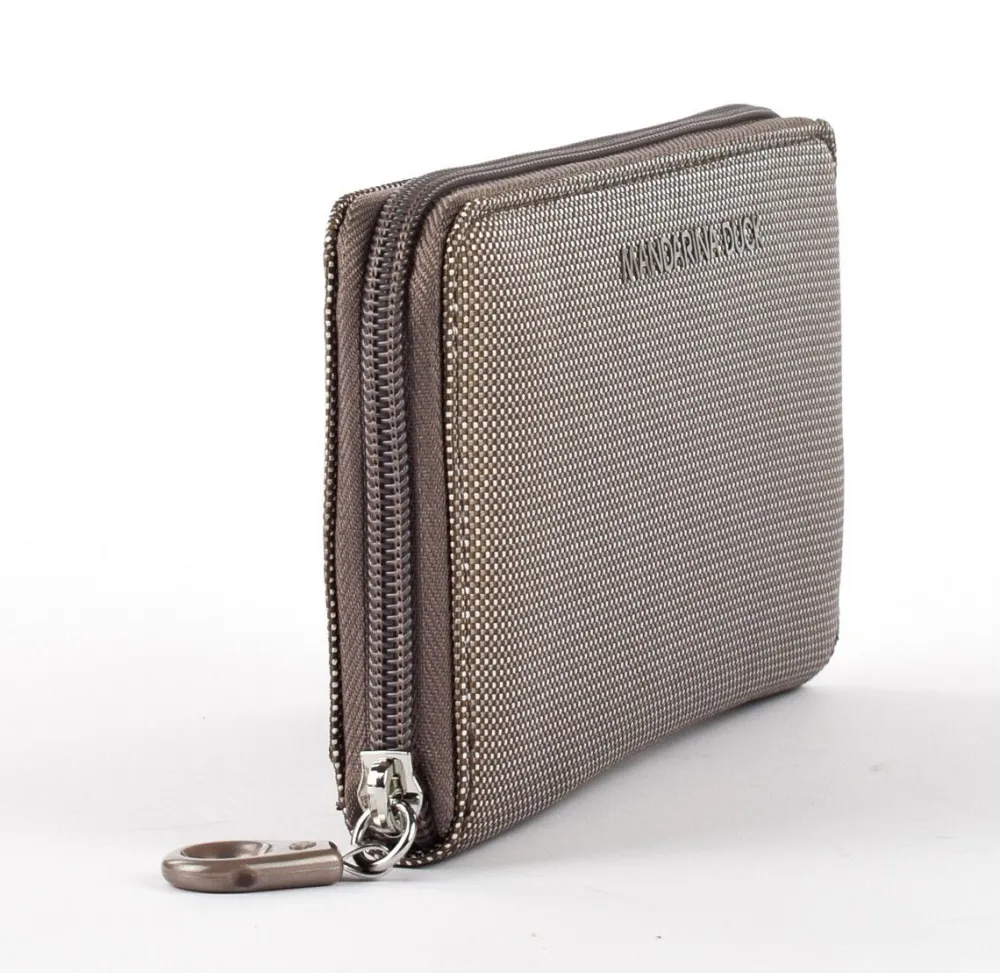 Portafoglio donna con zip Mandarina Duck MD20 MPN1. Portafoglio realizzato in poliestere di alta qualità Mitrix. Ampia tasca principale chiusa da zip, con vano banconote e documenti interno. Tasca portamonete chiusa da zip. Logo Mandarina Duck frontale.