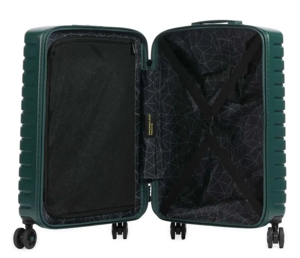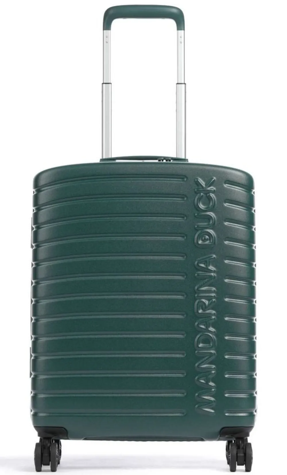 Trolley cabina Mandarina Duck Flyduck. Trolley cabina/bagaglio a mano realizzato in robusto policarbonato, quattro grandi e silenziose ruote gemellari piroettanti, zip di chiusura con sistema di sicurezza a tripla combinazione e TSA per gli Stati Uniti. Carrello di traino regolabile in altezza con push botton. Interno completamente foderato, con nastri per bloccare l’abbigliamento e divisorio. Garanzia 5 anni.