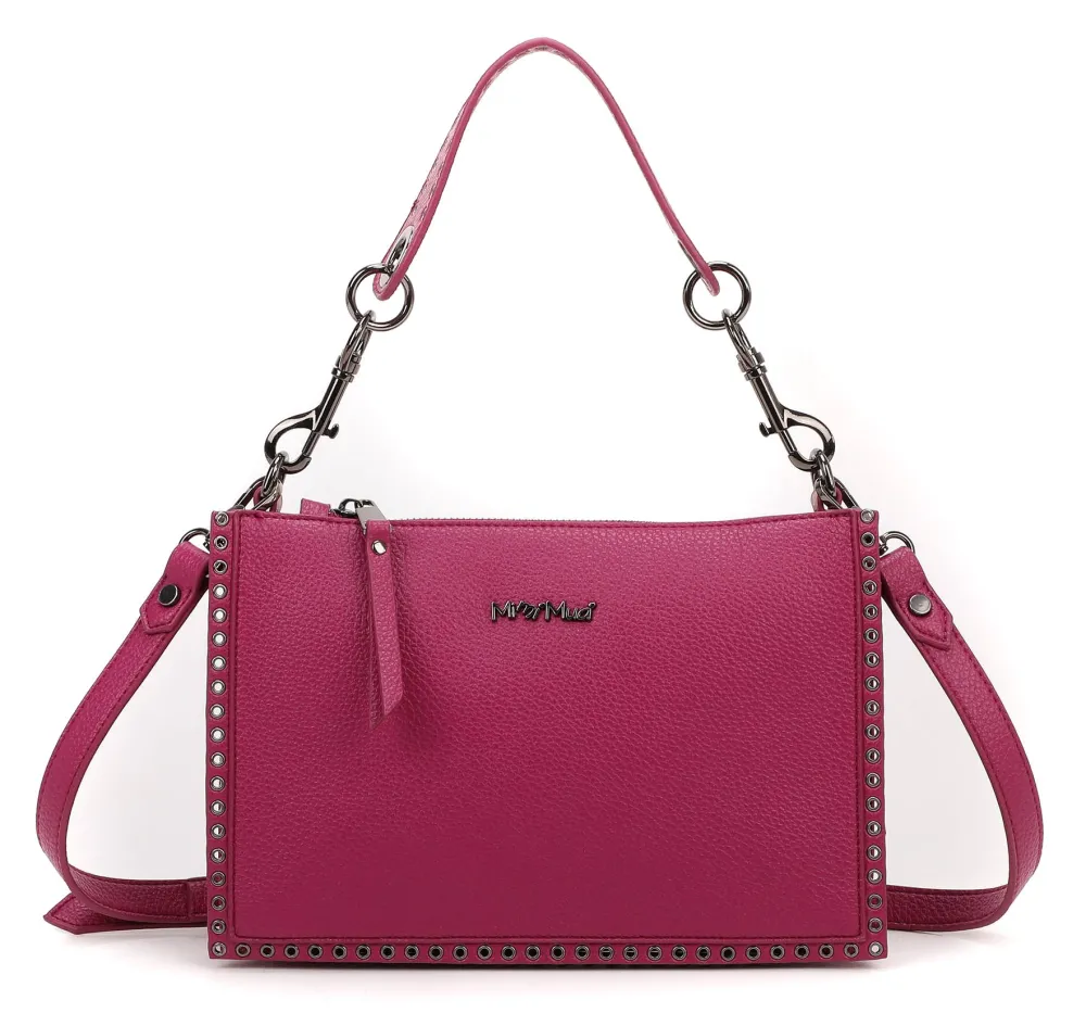 Borsa a spalla e tracolla Mimì-Muà . Borsa realizzata in robusto materiale sintetico. Ampia tasca principale chiusa da zip, tasca interna chiusa da zip e tasche per piccoli oggetti. Tracolla amovibile regolabile in lunghezza.