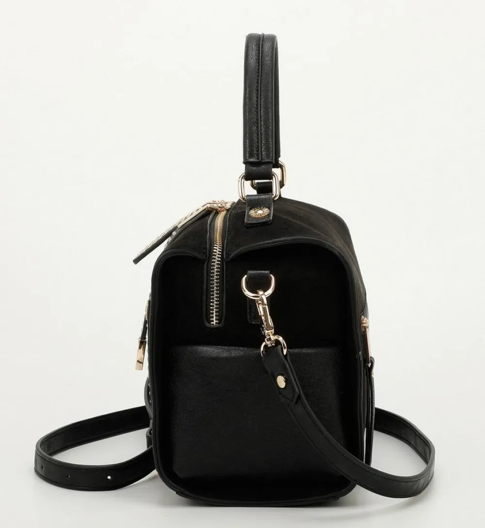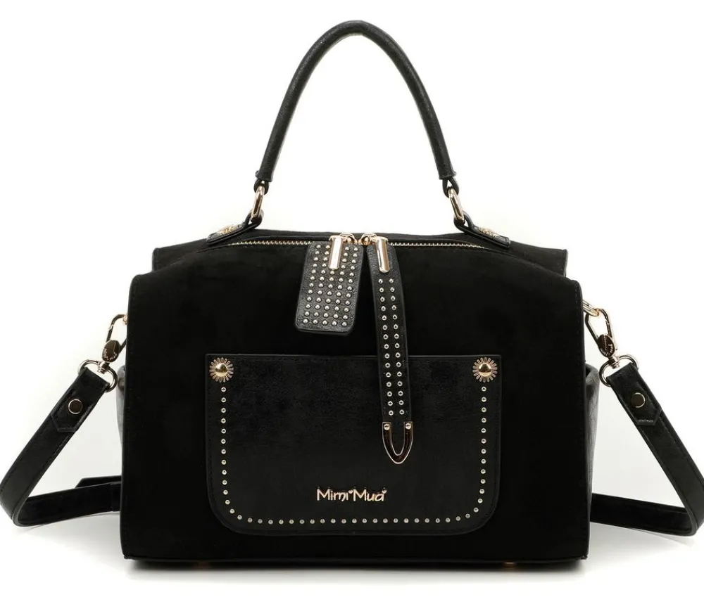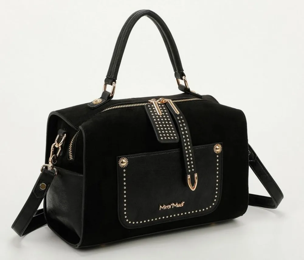 Borsa bauletto Mimì-Muà . Borsa due manici realizzata in robusto materiale sintetico. Ampia tasca principale chiusa da zip, tasche interne per piccoli oggetti. Tracolla amovibile regolabile in lunghezza.