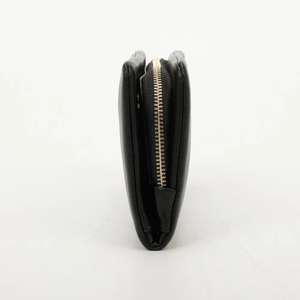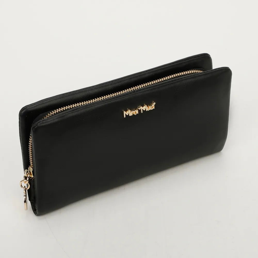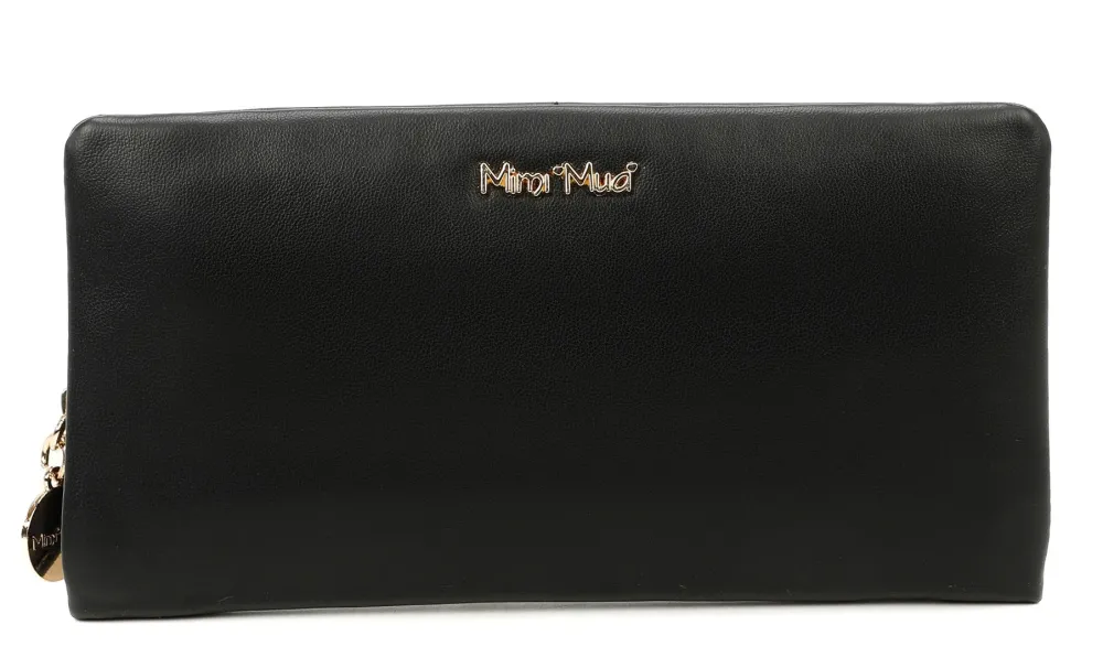Portafoglio donna Mimì-Muà . Realizzato in robusta pelle sintetica, tasca principale con vano banconote e porta carte di credito. Tasca portamonete chiusa da zip.