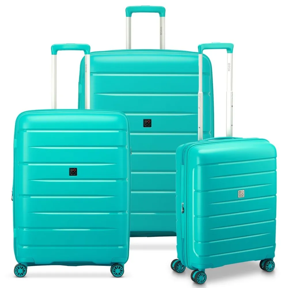 Set 3 Trolley MODO by Roncato Starlight 3.0. Trolley realizzato in polipropilene ultraleggero, 4 grandi ruote doppie piroettanti, carrello di traino telescopico con push botton, chiusura a tripla combinazione con sistema TSA per gli Stati Uniti. Interno completamente foderato, con divisorio, nastri per bloccare gli indumenti e tasche per piccoli oggetti. Zip di espansione.