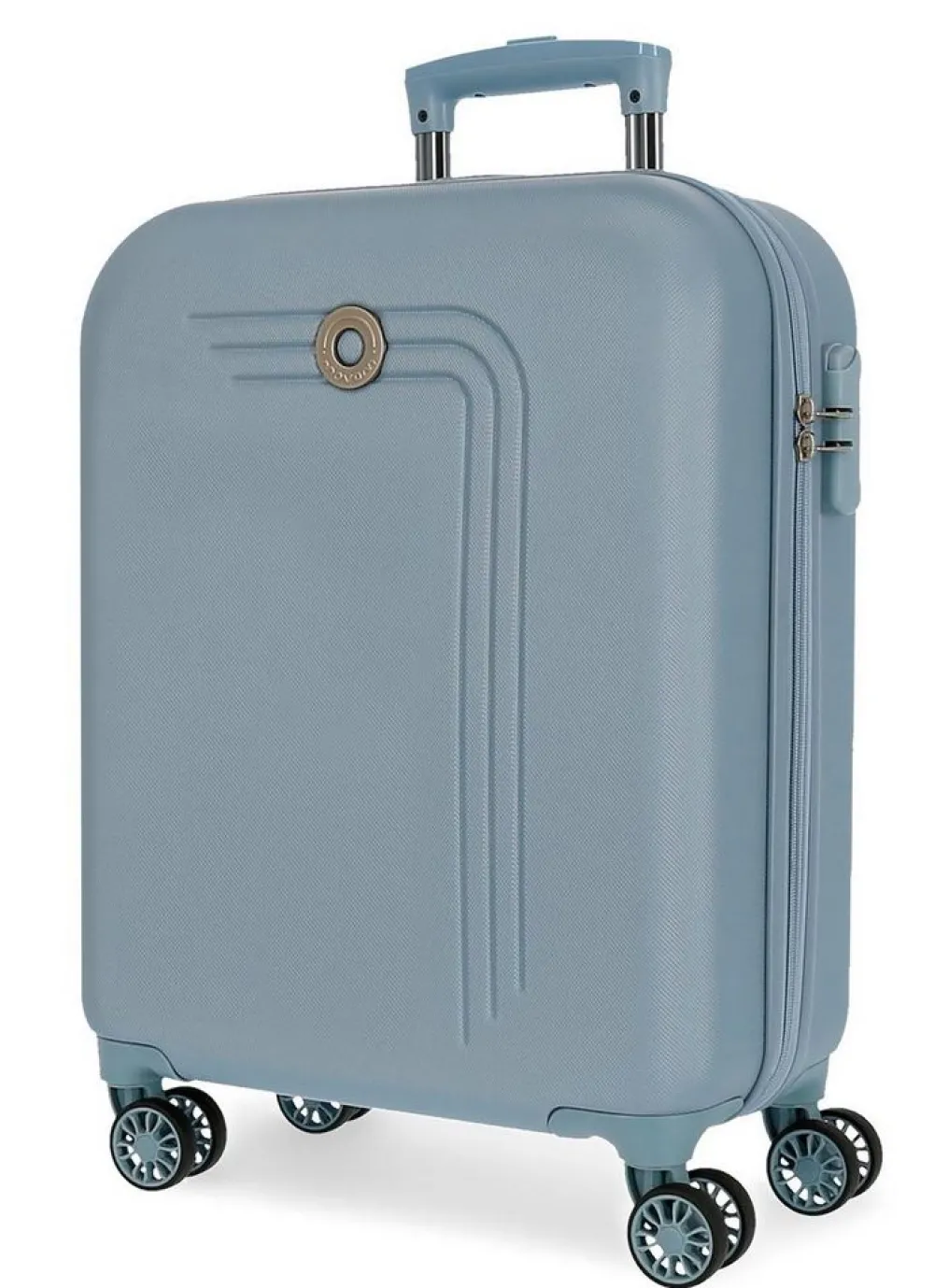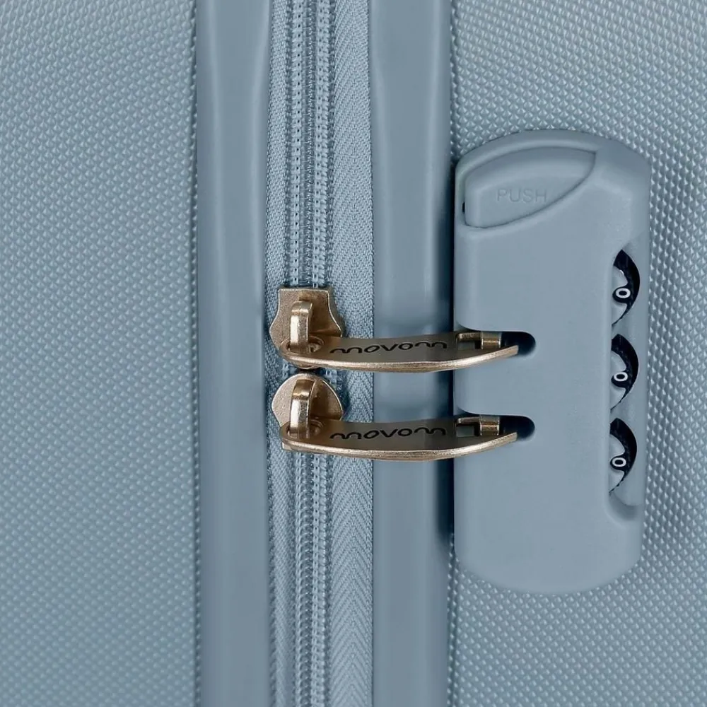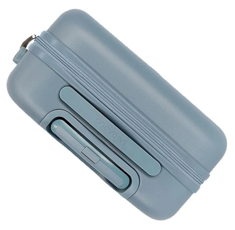 Trolley cabina Movom Riga. Trolley cabina realizzato in robusto ABS, quattro grandi e silenziose ruote piroettanti, sistema di sicurezza a tripla combinazione. Carrello di traino con push botton, maniglia di servizio superiore. Interno completamente foderato, con nastri per bloccare l’abbigliamento e divisorio. Garanzia 2 anni.