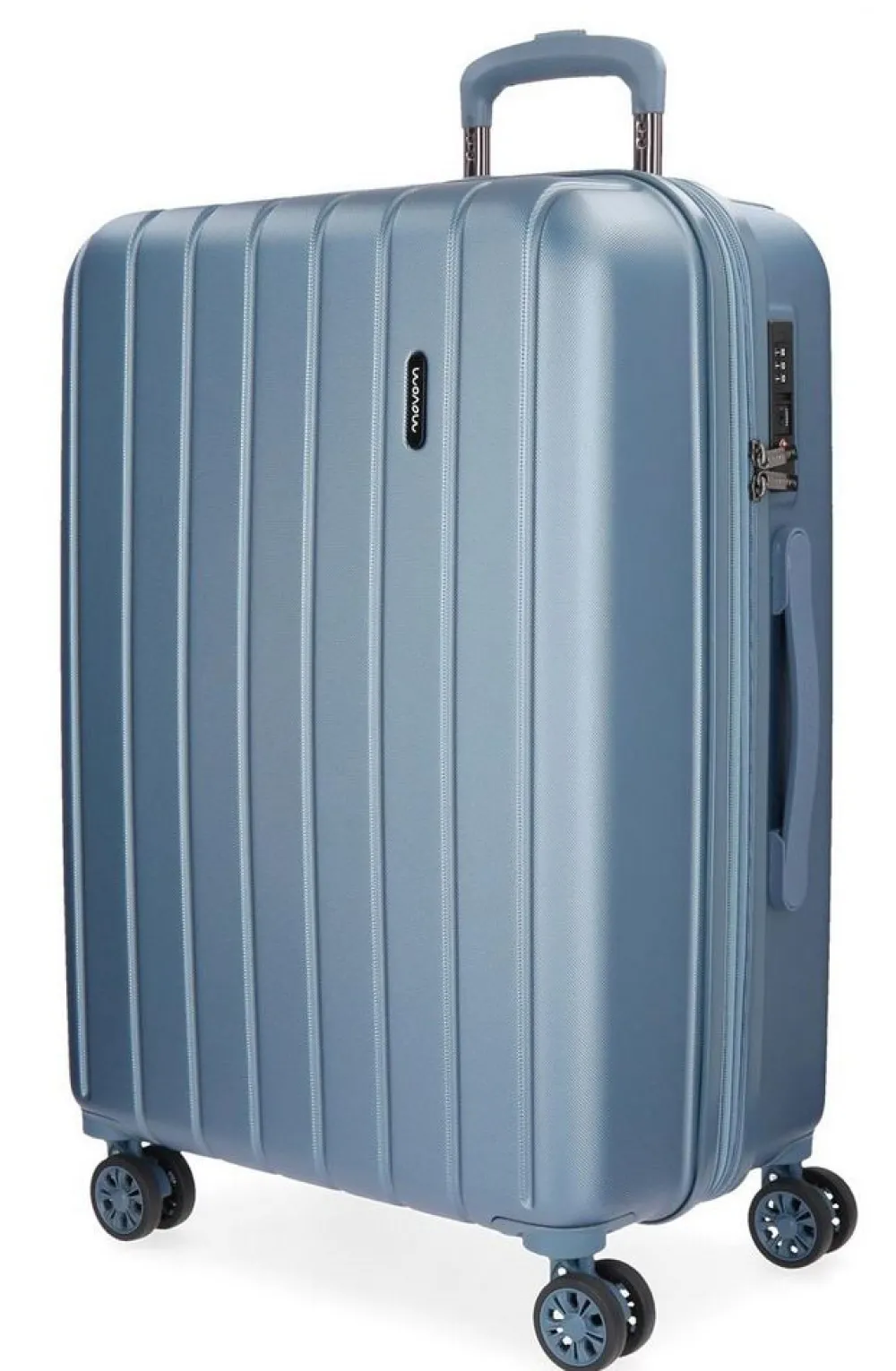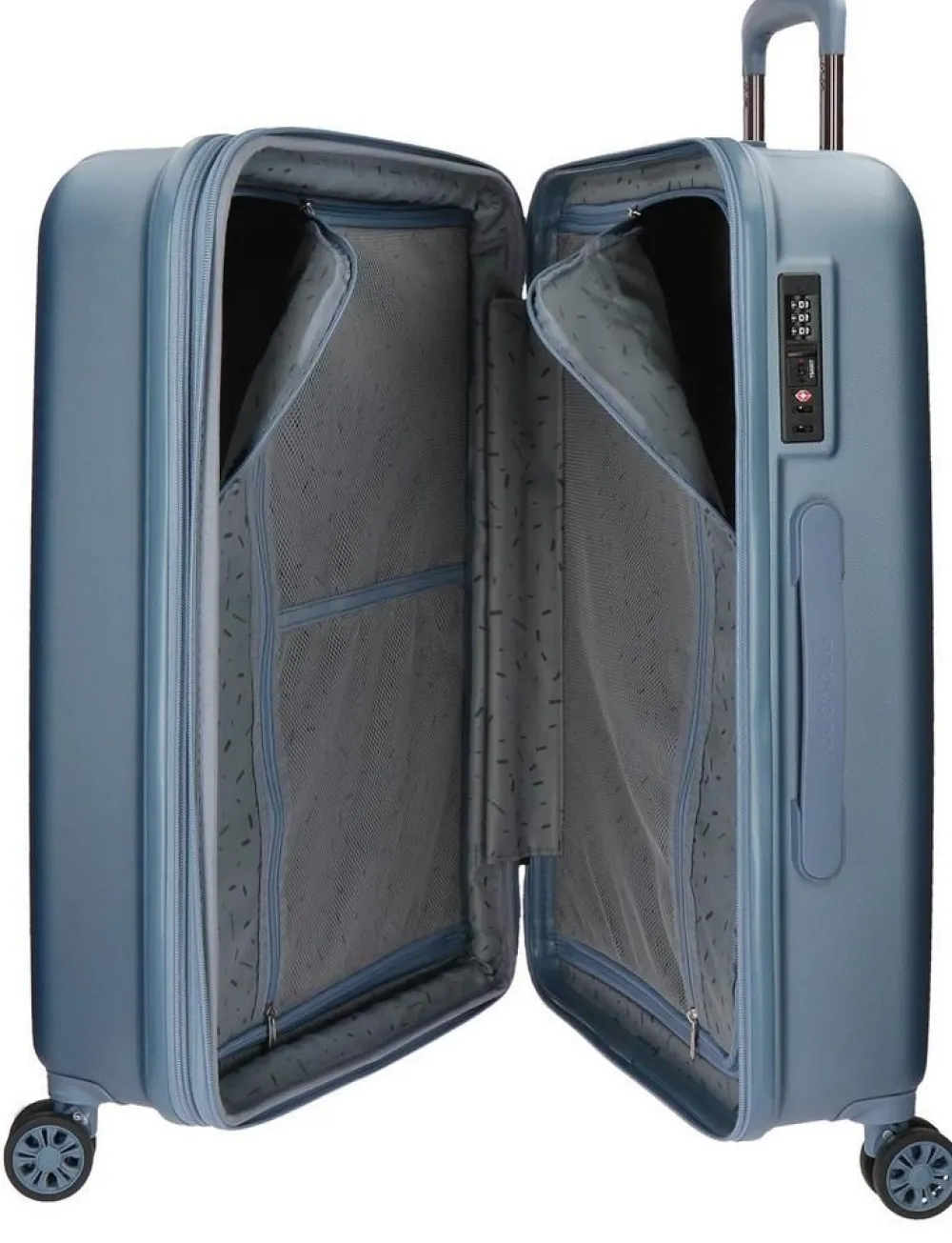 Trolley grande espandibile Movom Wood. Trolley realizzato in robusto ABS, quattro grandi e silenziose ruote piroettanti, sistema di sicurezza a tripla combinazione e TSA per gli Stati Uniti. Carrello di traino con push botton, maniglia di servizio laterale e superiore. Interno completamente foderato, con doppio divisorio per bloccare l’abbigliamento e divisorio. Zip di espansione. Garanzia 2 anni.