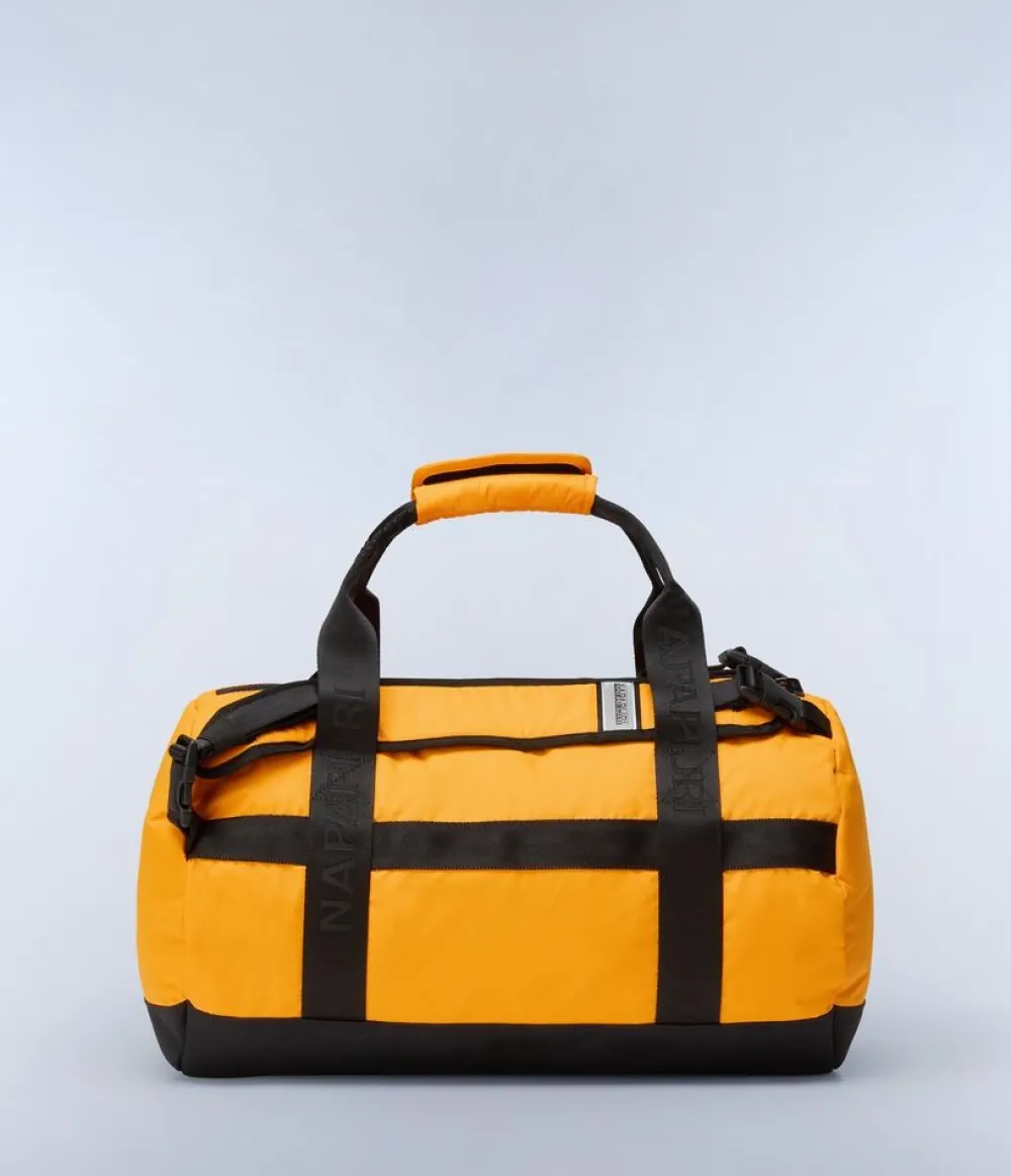 Borsone Zaino Napapijri Bering Travel Small. Realizzato in robusto poliestere gommato, resistente all’acqua. Ampia tasca principale chiusa da zip. Maniglie superiori. Grazie agli spallacci regolabili in lunghezza, è possibile utilizzarlo come borsa o come zaino. Logo frontale.