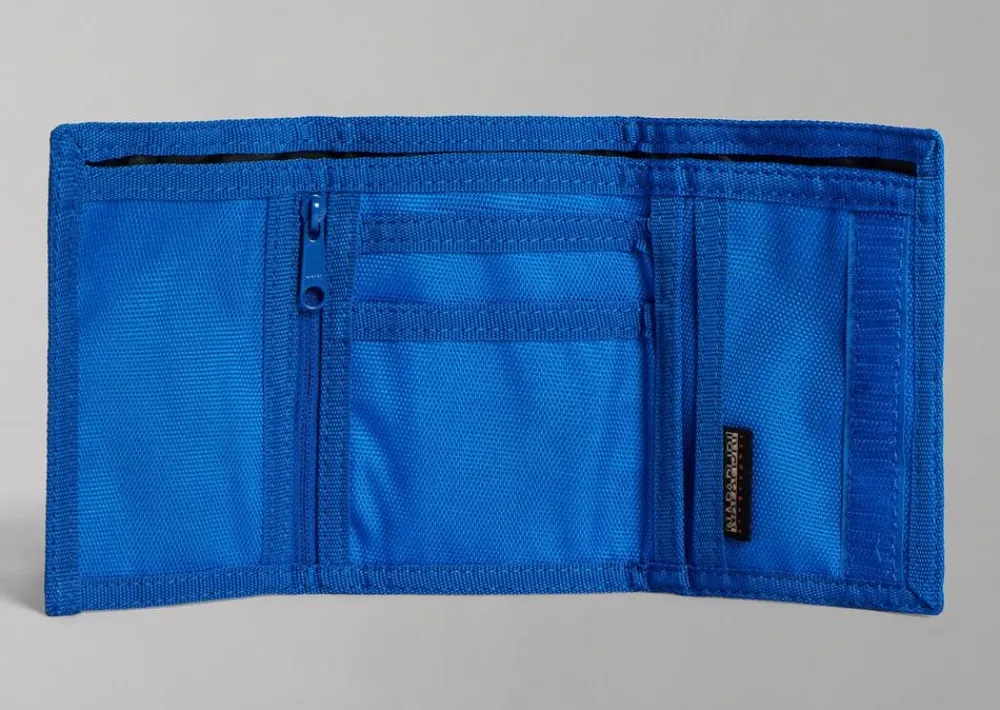 Portafoglio Napapijri Happy Wallet 5. Realizzato in robusto poliestere, con chiusura a strap, vano porta banconote e portadocumenti interno. Tasca portamonete chiusa da zip.