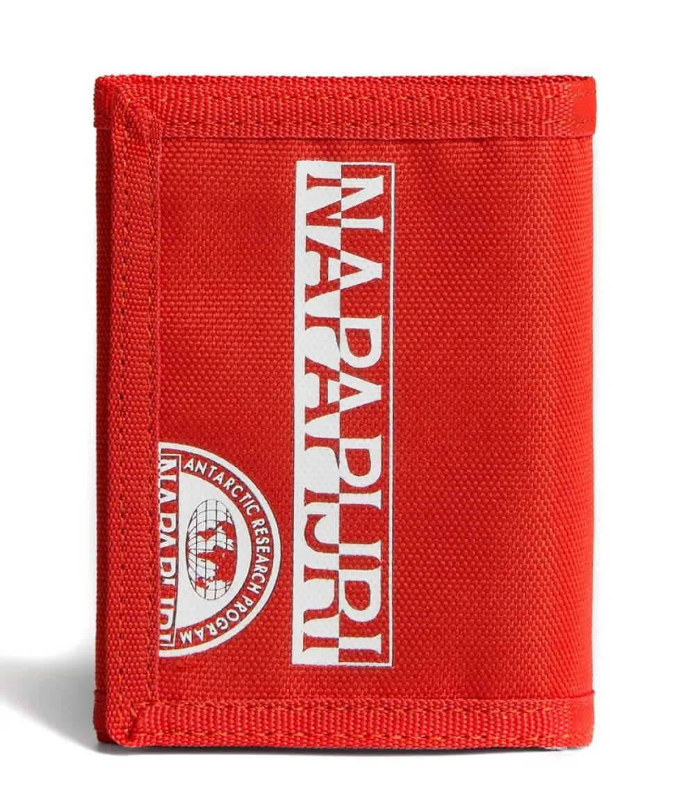 Portafoglio Napapijri Happy Wallet 5. Realizzato in robusto poliestere, con chiusura a strap, vano porta banconote e portadocumenti interno. Tasca portamonete chiusa da zip.