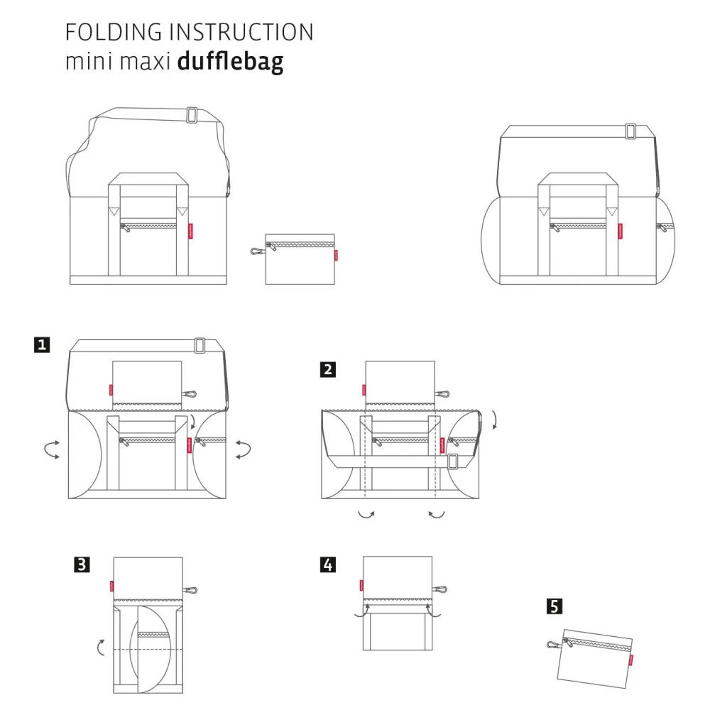 Borsone pieghevole Reisenthel mini maxi dufflebag. Borsone due manici pensato per il viaggio o la palestra. Ampia tasca principale chiusa da zip, tasca frontale chiusa da zip, manici in fettuccia di poliestere, ripiegabile.
