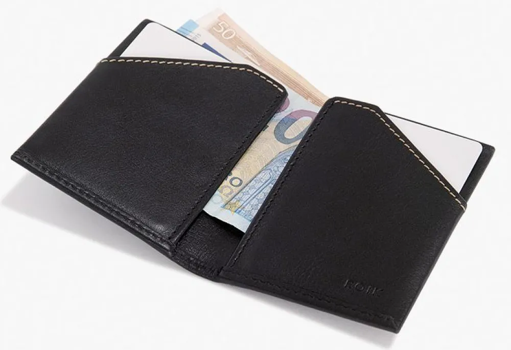 Portafoglio sottile ROIK City. Realizzato in vera pelle bovina di alta qualità , spazio per conservare fino a 10 carte, protezione RFID nelle tasche interne. Il vano principale consente di inserire banconote senza doverli piegare (fino al taglio 50 €). Tasca esterna ad accesso rapido consente di inserire due carte di uso frequente. Il modello City consente di inserire tutto il necessario, rimanendo ultra-compatto ed ultra-sottile. Garanzia 3 anni.