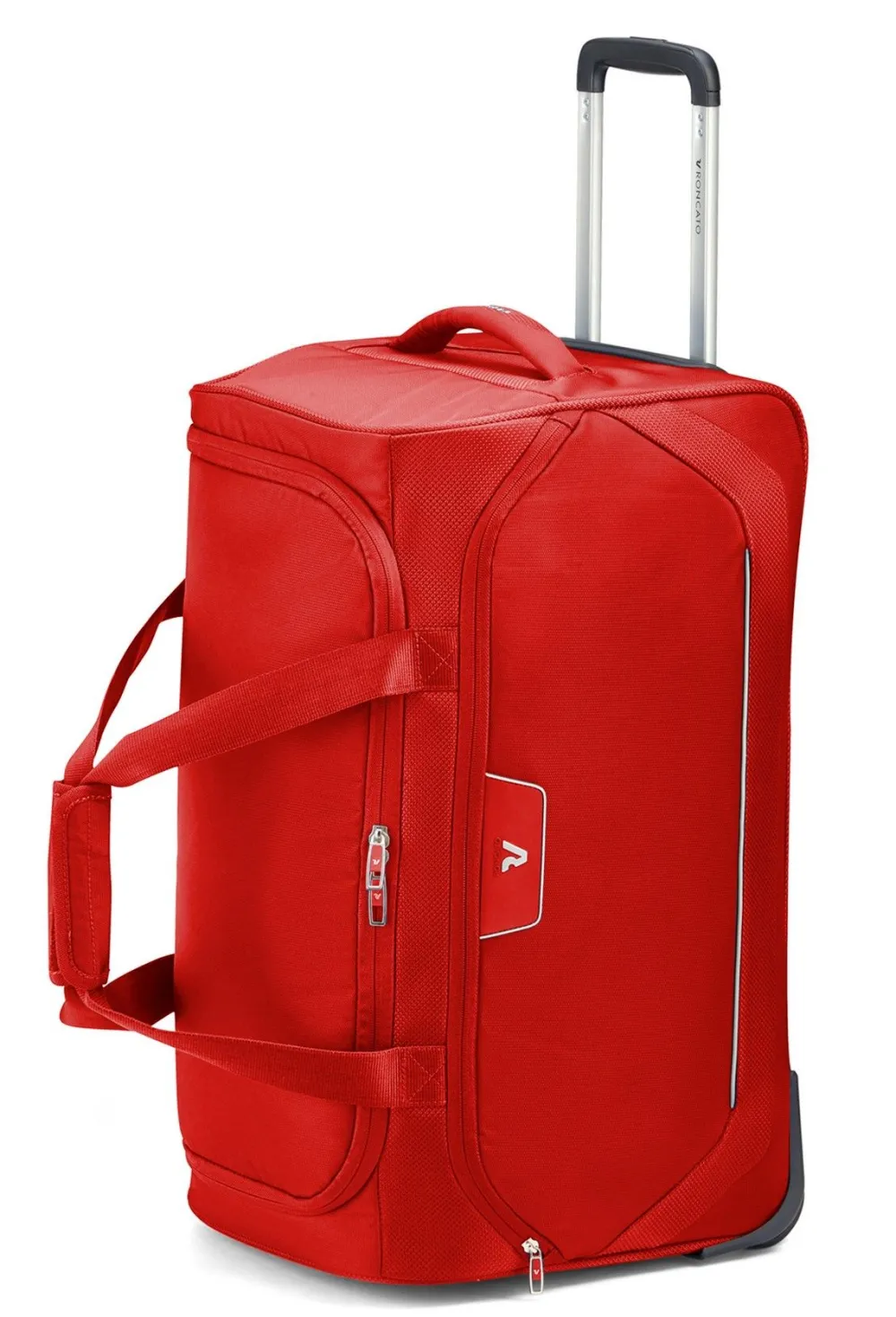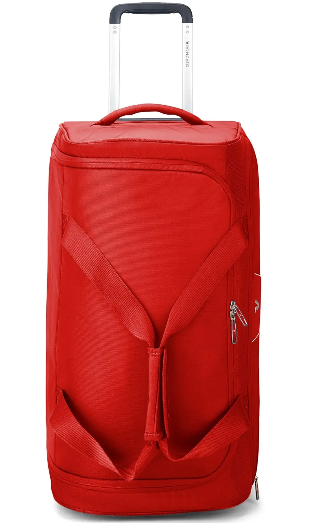 Borsone Trolley Roncato Joy 6204. Realizzato in robusto nylon, con robuste ruote integrate e carrello di traino telescopico con push botton. Ampia apertura della tasca principale, che consente un comodo accesso. Ampia tasca frontale chiusa da zip. Maniglia superiore di servizio. Garanzia 2 anni