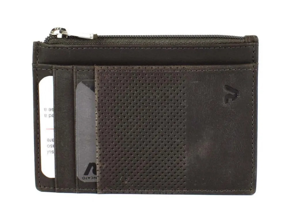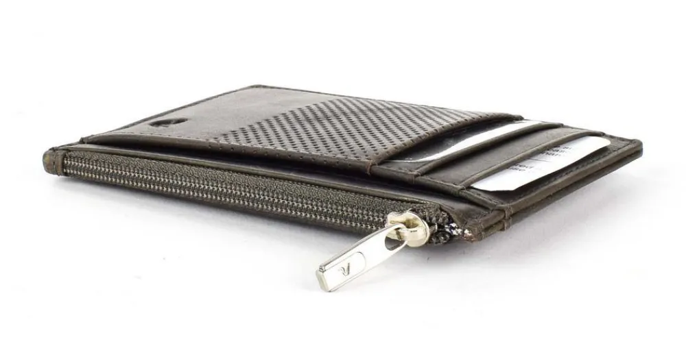 Portadocumenti piatto Roncato New York 2114 Points. Portafoglio realizzato in vera di alta qualità , ampio comparto principale portadocumenti chiuso da zip, due frontali organizzati per bancomat e carte di credito. Schermatura RFID.