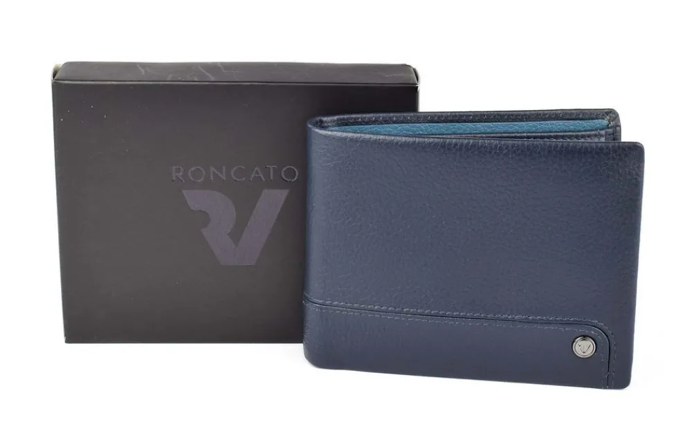 Portafoglio uomo in pelle Roncato Alaska 2410. Realizzato in pelle di alta qualità , con vano portadocumenti, tasca portamonete chiusa da bottone, ribalta portadocumenti e doppio vano portabanconote. Schermatura RFID