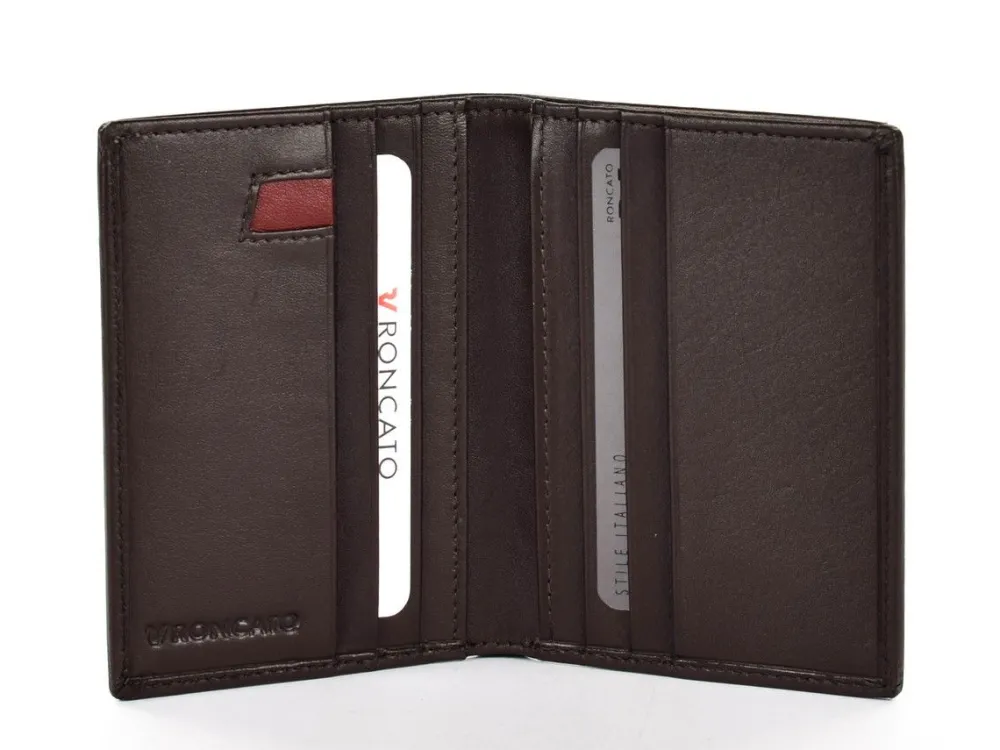 Portafoglio uomo piccolo Roncato Pascal 2909. Portafoglio realizzato in vera pelle, per avere il minimo ingombro possibile. La misura consente di inserire bancomat, carte di credito, banconote fino ad un taglio di 100 euro e patente (modello nuovo). Porta carte di credito plastico interno amovibile.