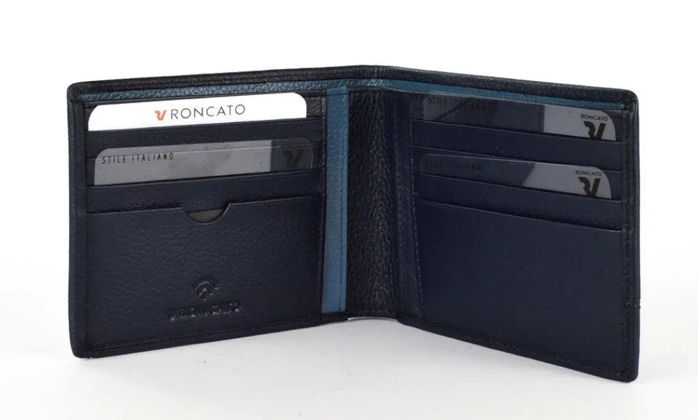 Portafoglio uomo sottile Roncato Alaska 2412. Realizzato in pelle di alta qualità , con vano portadocumenti e doppio vano portabanconote. Schermatura RFID