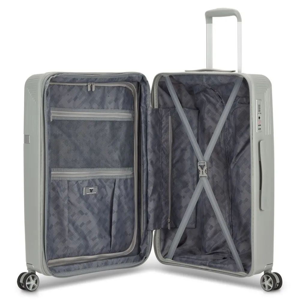 Set 3 Trolley espandibili Roncato AirGlam. Trolley realizzato in robusto policarbonato/ABS, 4 ruote doppie piroettanti per la massima manovrabilità , carrello di traino telescopico con push botton, chiusura a tripla combinazione con sistema TSA per gli Stati Uniti, zip di espansione che consente di aumentare la capacità a seconda delle necessità . Interno completamente foderato con divisorio e nastri per bloccare l’abbigliamento. Garanzia 3 anni.