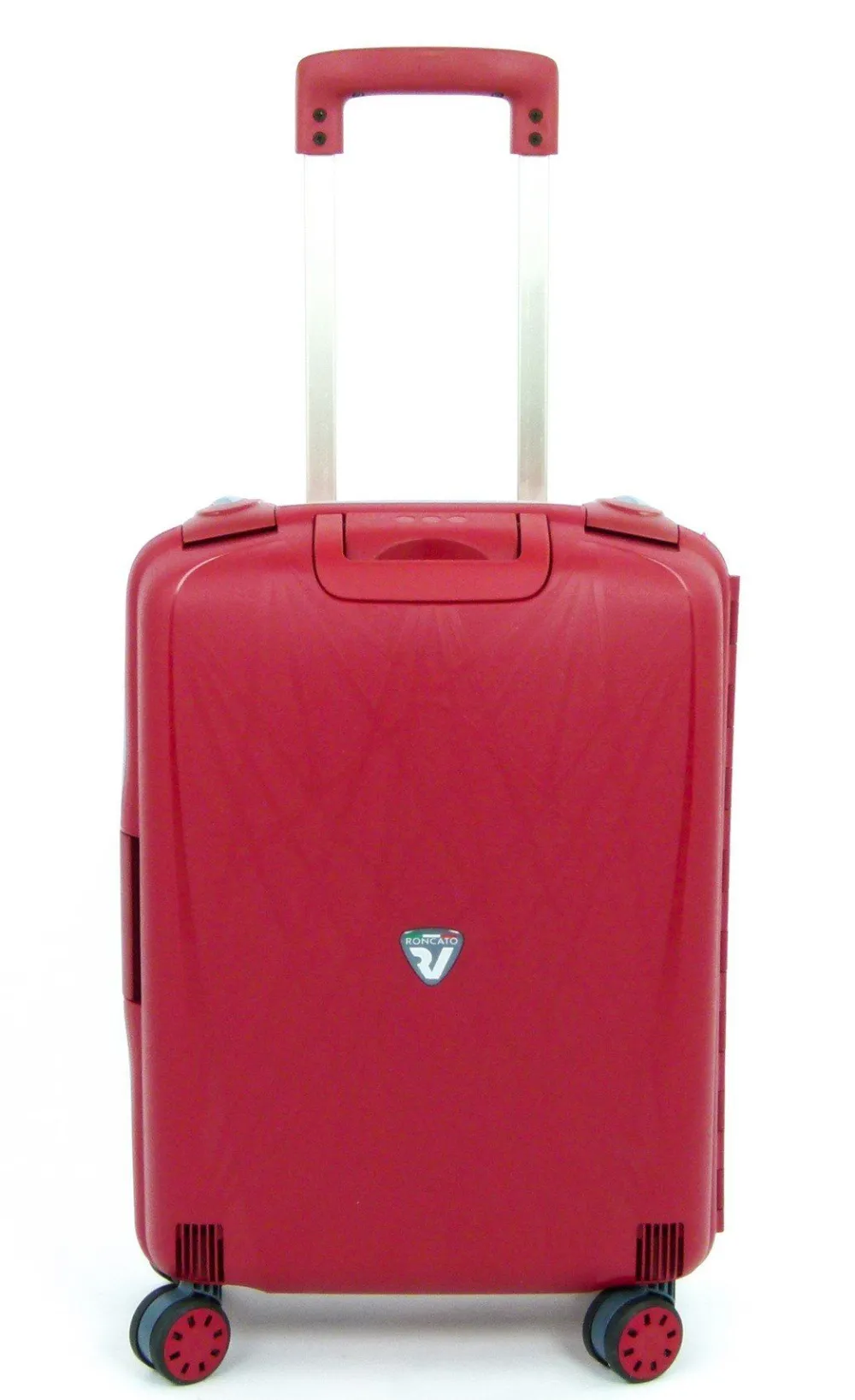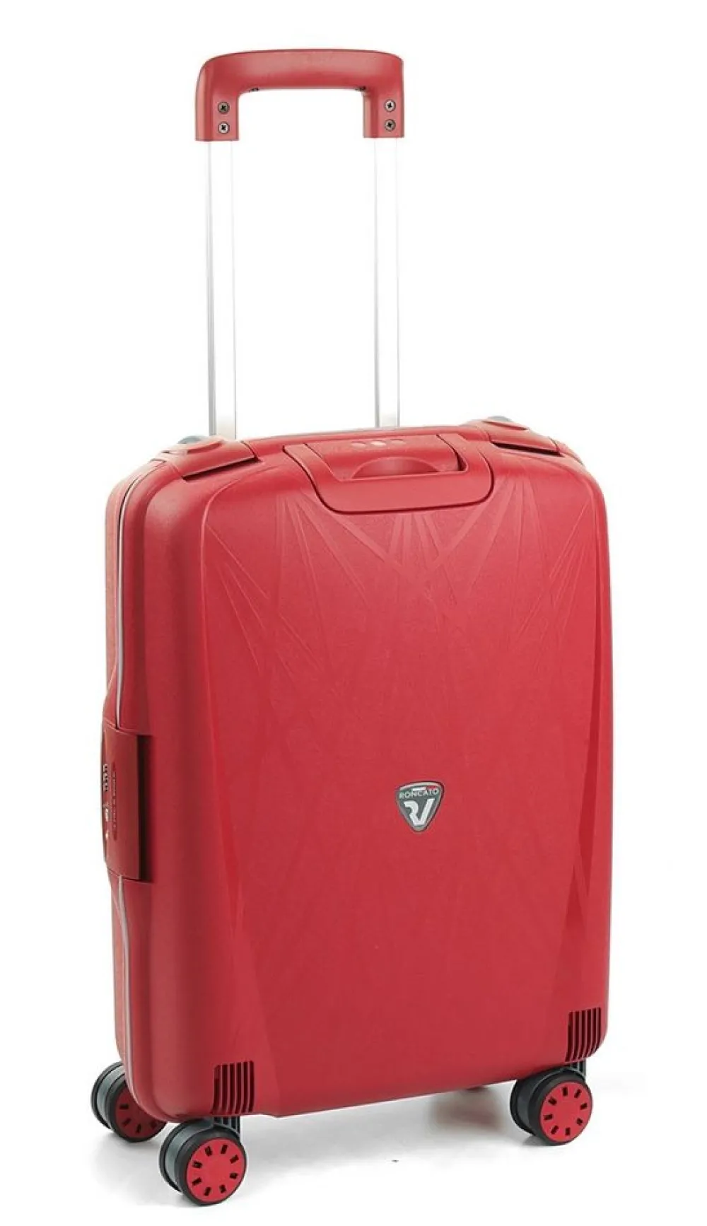 Trolley Roncato Light 4 ruote cabina art 714. Trolley in polipropilene ultraleggero realizzato interamente in Italia, con maniglia di traino integrata, 4 ruote piroettanti, maniglia superiore integrata, interno accessoriato con divisorio e tasche per piccoli oggetti, sistema di sicurezza altamente resistente (composto da 3 chiusure con blocco di sicurezza e una combinazione centrale dotata di sistema TSA per i Vostri viaggi negli Stati Uniti). I motivi grafici sul frontale del trolley ricordano una ragnatela e sono il frutto di una ricerca specifica da parte dell’azienda produttrice. Durante il processo produttivo il polipropilene viene iniettato all’interno dello stampo in maniera sequenziale, riducendo così lo spessore della plastica (e quindi il peso) e garantendo grandi doti di elasticità e resistenza. Un occhio attento anche alla salvaguardia dell’ambiente. Il trolley è riciclabile al 100% ed è costruito utilizzando un sistema di produzione e assemblaggio studiato per ridurre l’emissione di CO2 nell’ambiente. Test effettuati sul prodotto: Test di caduta : a pieno carico – Test di tamburo : 20 rotazioni a pieno carico – Ruote : 32.000m a pieno carico – Serrature : 7.500 aperture/chiusure – Maniglie : 5000 cicli a pieno carico