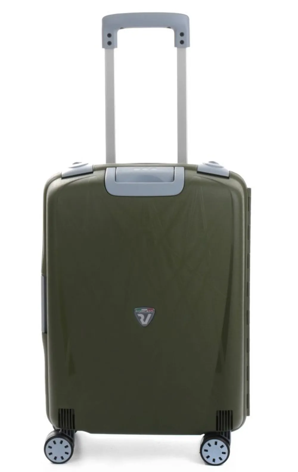 Trolley Roncato Light 4 ruote cabina art 714. Trolley in polipropilene ultraleggero realizzato interamente in Italia, con maniglia di traino integrata, 4 ruote piroettanti, maniglia superiore integrata, interno accessoriato con divisorio e tasche per piccoli oggetti, sistema di sicurezza altamente resistente (composto da 3 chiusure con blocco di sicurezza e una combinazione centrale dotata di sistema TSA per i Vostri viaggi negli Stati Uniti). I motivi grafici sul frontale del trolley ricordano una ragnatela e sono il frutto di una ricerca specifica da parte dell’azienda produttrice. Durante il processo produttivo il polipropilene viene iniettato all’interno dello stampo in maniera sequenziale, riducendo così lo spessore della plastica (e quindi il peso) e garantendo grandi doti di elasticità e resistenza. Un occhio attento anche alla salvaguardia dell’ambiente. Il trolley è riciclabile al 100% ed è costruito utilizzando un sistema di produzione e assemblaggio studiato per ridurre l’emissione di CO2 nell’ambiente. Test effettuati sul prodotto: Test di caduta : a pieno carico – Test di tamburo : 20 rotazioni a pieno carico – Ruote : 32.000m a pieno carico – Serrature : 7.500 aperture/chiusure – Maniglie : 5000 cicli a pieno carico