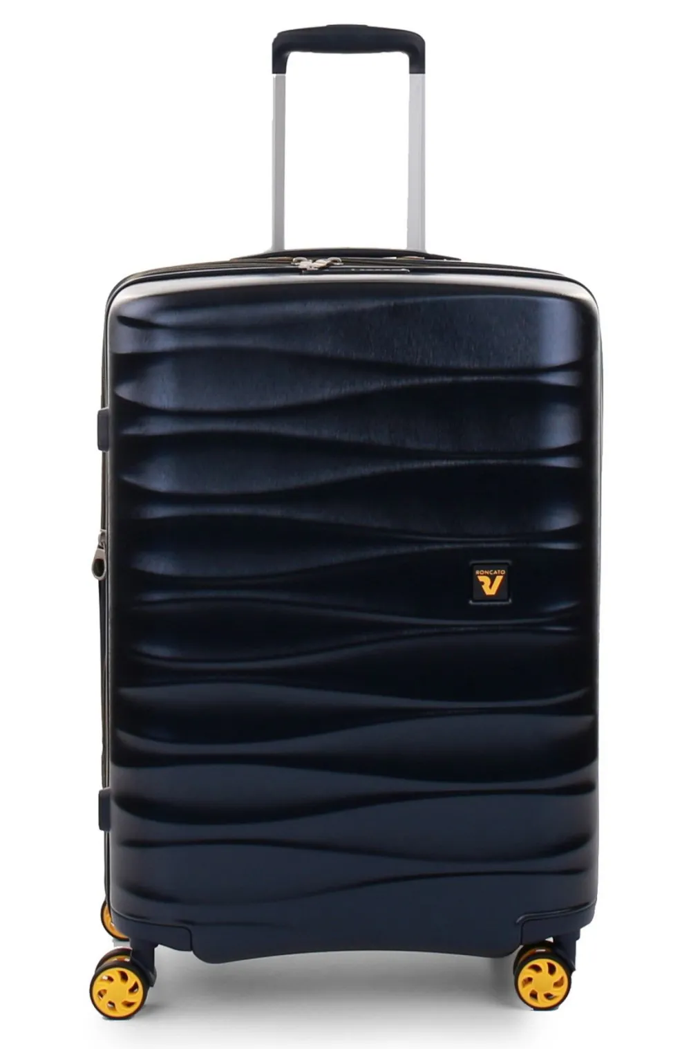 Trolley espandibile Roncato Stellar medio 4702. Trolley realizzato in robusto policarbonato, carrello telescopico con push botton, 4 ruote piroettanti doppie. Chiusura integrata con tripla combinazione TSA per gli Stati Uniti. Interno completamente foderato, con divisorio e nastri per bloccare l’abbigliamento. Zip di espansione, che consente di aumentare la capacità in caso di bisogno. Garanzia 3 anni.