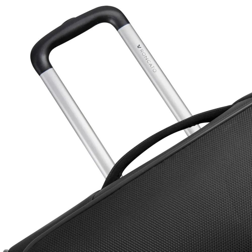 Trolley grande Roncato Jazz 4.0 4641. Trolley realizzato in robusto poliestere, 4 grandi ruote gemellari piroettanti per la massima scorrevolezza, carrello di traino in alluminio con push botton, tasca frontale chiusa da zip, maniglia di servizio superiore e laterale. Sistema di chiusura a tripla combinazione con sistema TSA per gli Stati Uniti. Zip di espansione che consente di aumentare la capacità a seconda delle necessità ! Internamente organizzato con nastri per bloccare l’abbigliamento e divisorio. Garanzia 2 anni.