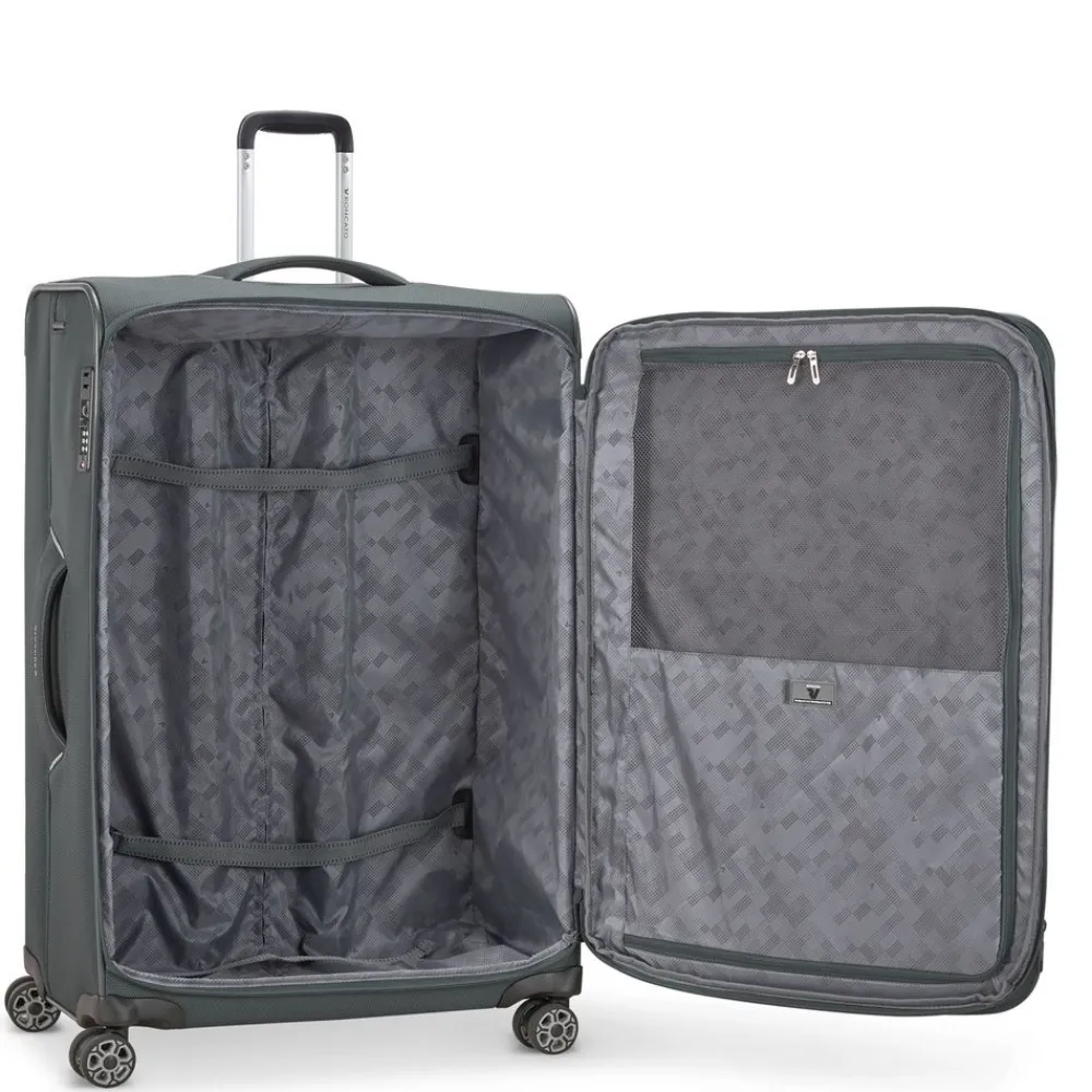 Trolley medio Roncato Ironik 2.0 5302. Trolley realizzato in robusto nylon e poliestere, 4 grandi ruote gemellari piroettanti per la massima scorrevolezza, carrello di traino in alluminio con push botton, ampia tasca frontale chiusa da zip, maniglia di servizio superiore e laterale, portaindirizzo integrato sul fianco. Sistema di chiusura a tripla combinazione con sistema TSA per gli Stati Uniti. Zip di espansione che consente di aumentare la capacità a seconda delle necessità ! Internamente organizzato con nastri per bloccare l’abbigliamento e divisorio. Garanzia 3 anni.