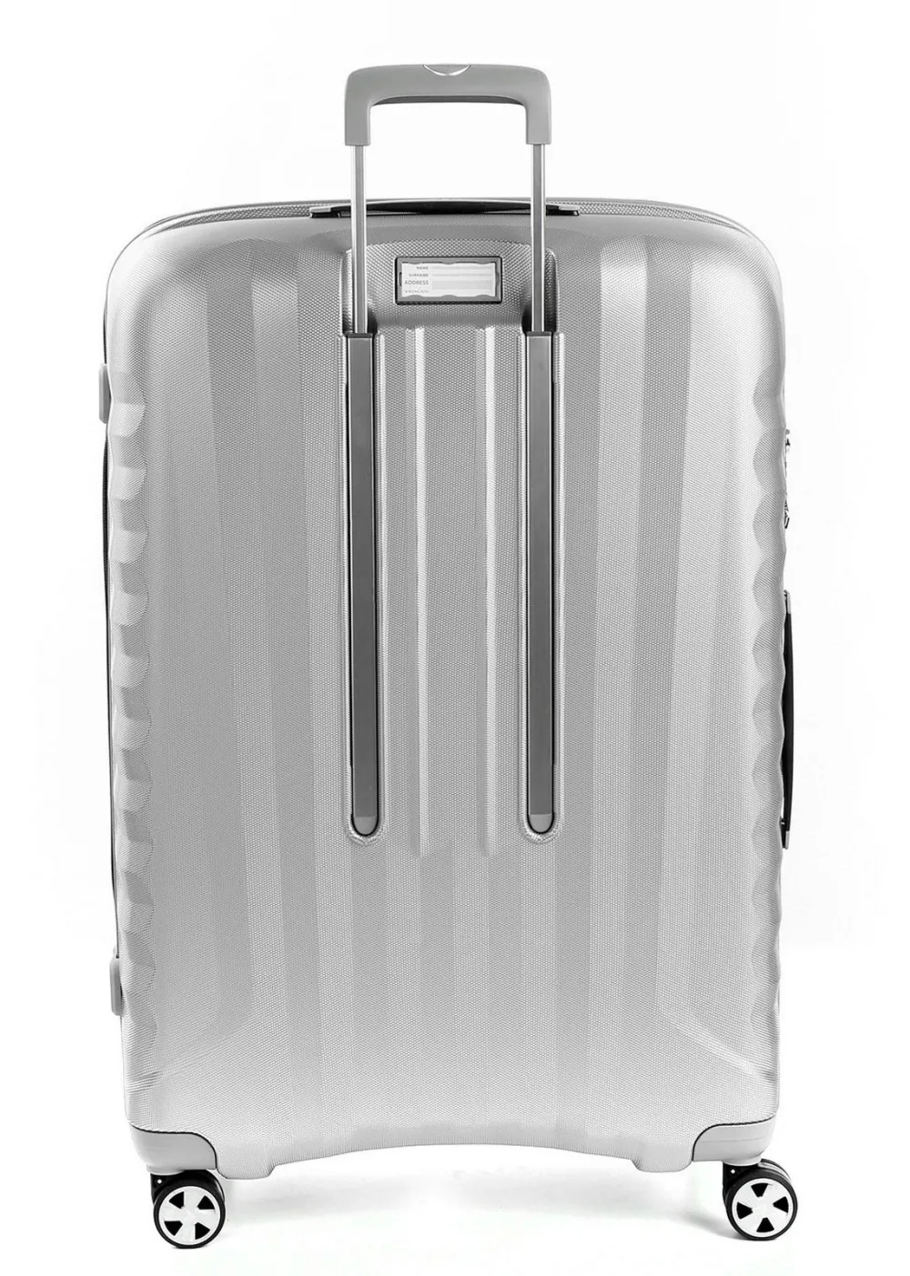 Trolley Roncato Uno ZSL Premium 2.0 grande XL 5468. Trolley realizzato in robusto policarbonato ultraleggero, 4 ruote doppie piroettanti per la massima manovrabilità , carrello di traino telescopico con push botton, chiusura a tripla combinazione con sistema TSA per gli Stati Uniti. Interno completamente foderato con divisorio, facile da rimuovere per la pulizia. Made in Italy – Garanzia 10 anni.