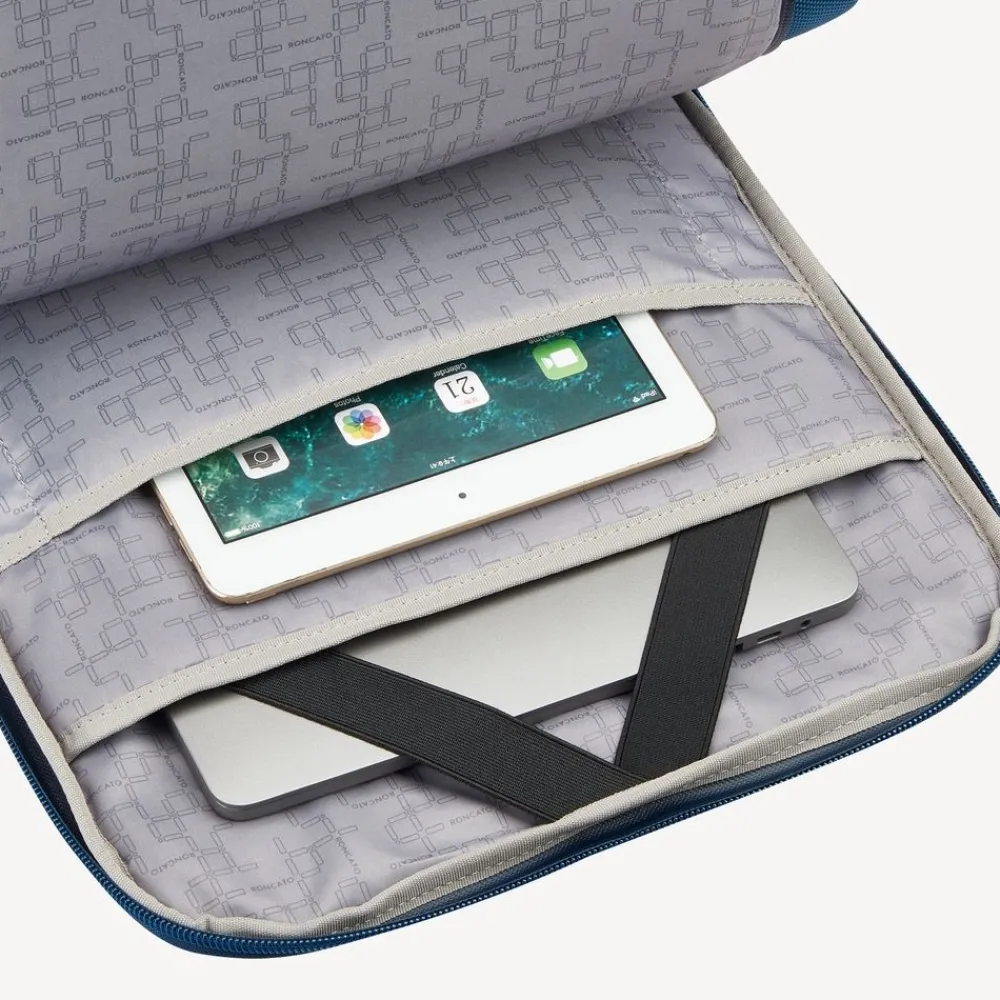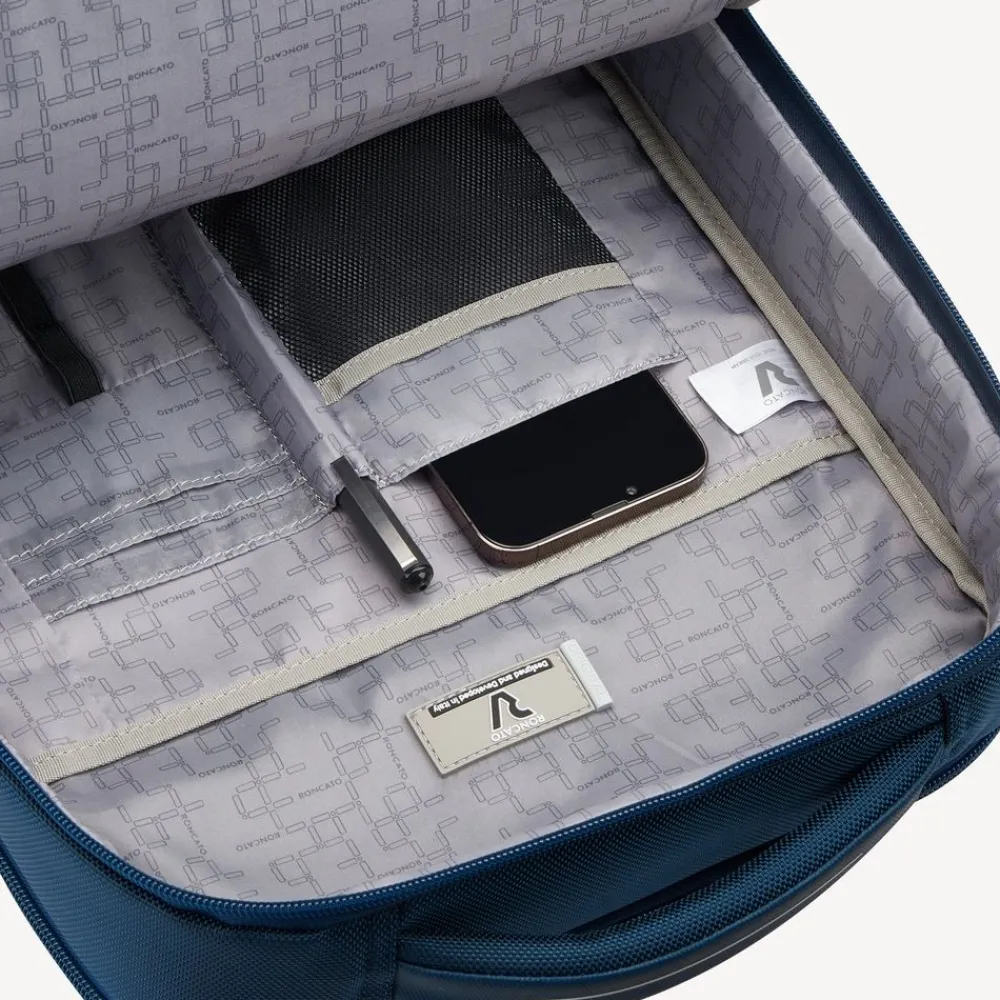 Zaino lavoro 14″ Roncato Trial 2246. Realizzato in robusto nylon e poliestere, spallacci e schienale gommati e traspiranti. Due tasche principali con vano porta pc 14″ e tablet, tasca frontale. Passante asta trolley posteriore. Maniglia superiore. Garanzia 3 anni.