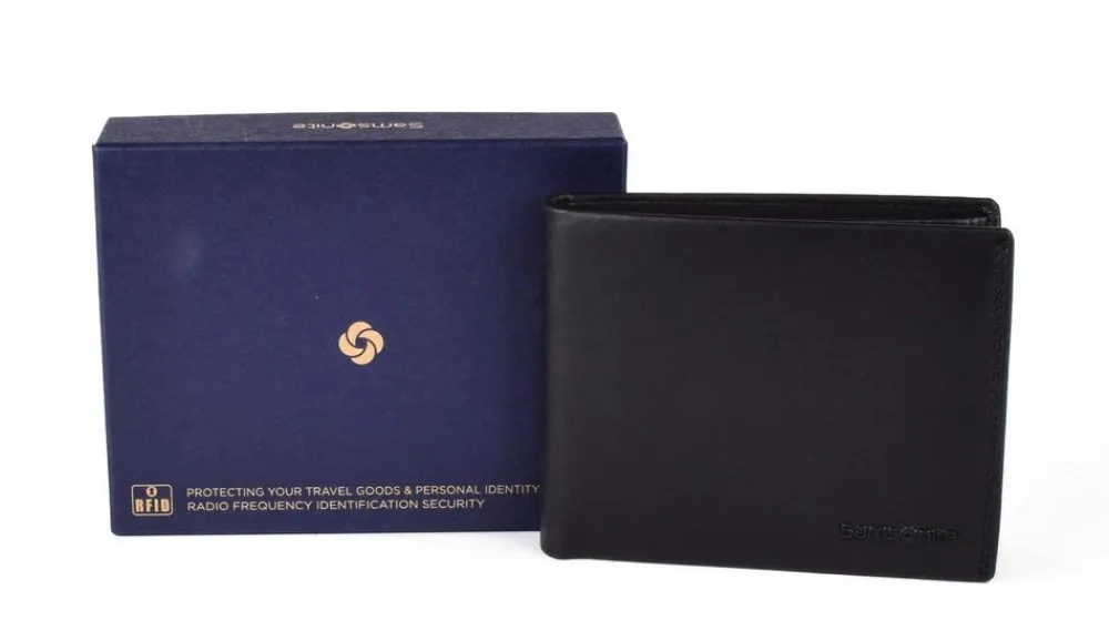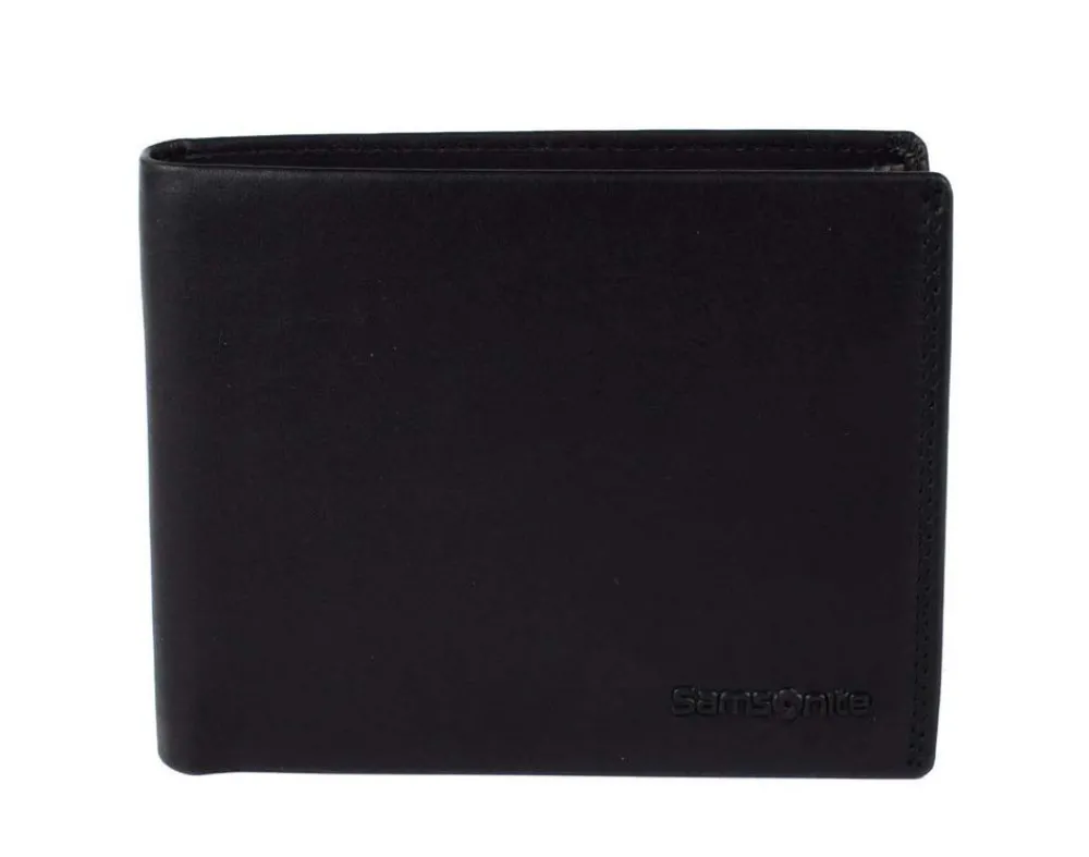 Portafoglio uomo Samsonite Attack 2 SLG 015. Realizzato in vera pelle di alta qualità , con vano portadocumenti, doppio vano portabanconote, tasca portamonete chiusa da bottone. Protezione RFID. Logo Samsonite frontale.