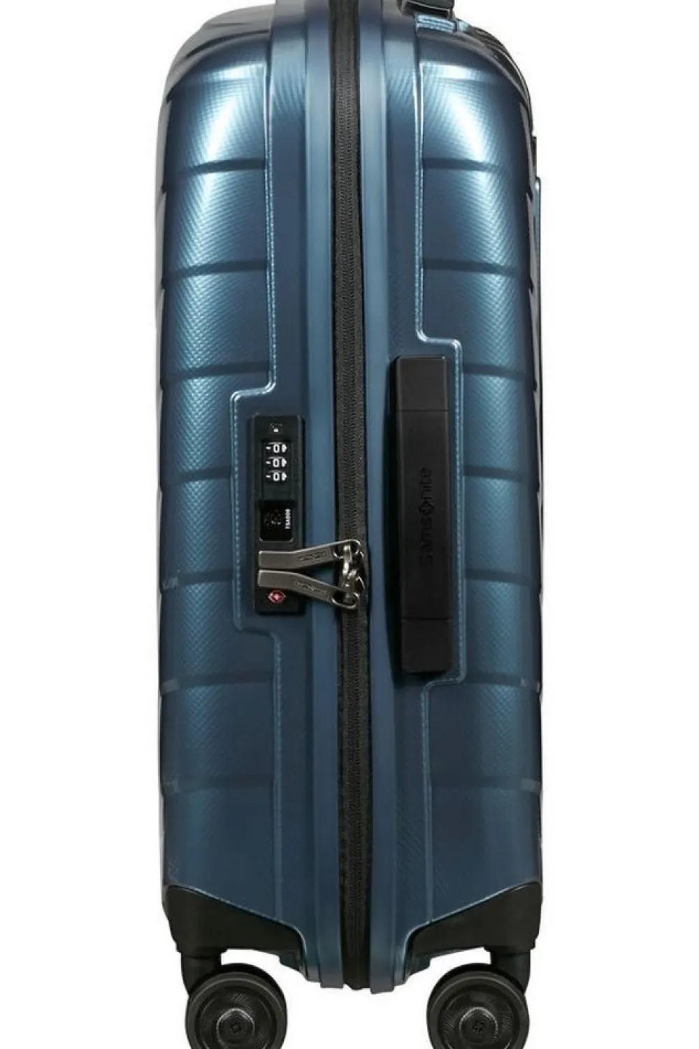 Trolley cabina Samsonite Attrix. Trolley cabina realizzato in robusto Roxkinâ„¢, quattro grandi e silenziose ruote piroettanti, sistema di sicurezza a tripla combinazione e TSA per gli Stati Uniti. Carrello di traino bitubo regolabile in altezza con push botton, maniglia di servizio superiore e laterale. Interno completamente foderato, con nastri per bloccare l’abbigliamento e doppio divisorio. Zip di espansione. Garanzia 10 anni.