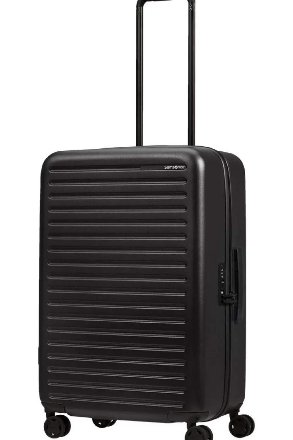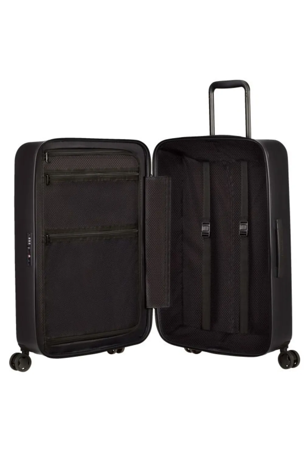 Trolley medio 68cm Samsonite Stackd. Trolley realizzato in robusto Policarbonato, 4 ruote piroettanti gemellari per la massima manovrabilità , carrello di traino telescopico con push botton, chiusura a tripla combinazione con sistema TSA per gli Stati Uniti. Interno completamente foderato con divisorio e nastri per bloccare l’abbigliamento. Garanzia 5 anni.